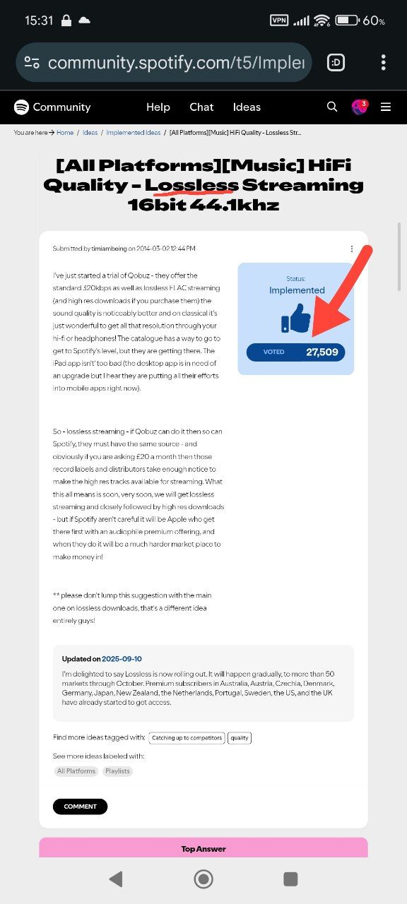 Ну у меня lossless есть, со стороны Spotify ко мне видимо особенное отношение:)