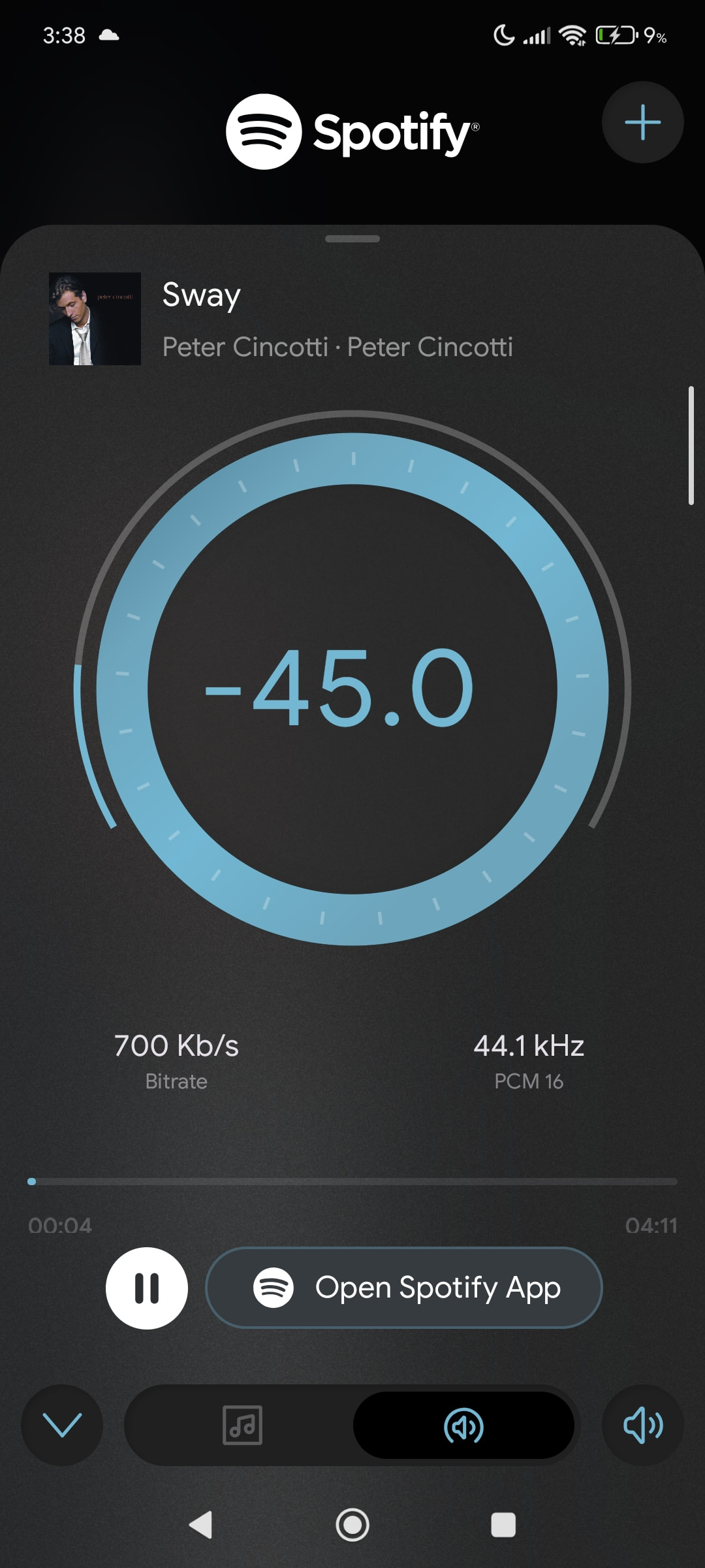 У кого есть отображение битрейта на стримере? Приступил к прослушиванию Spotify lossless, и что-то я не очень впечатлён. Как бы не сильно от ogg их и отличается.