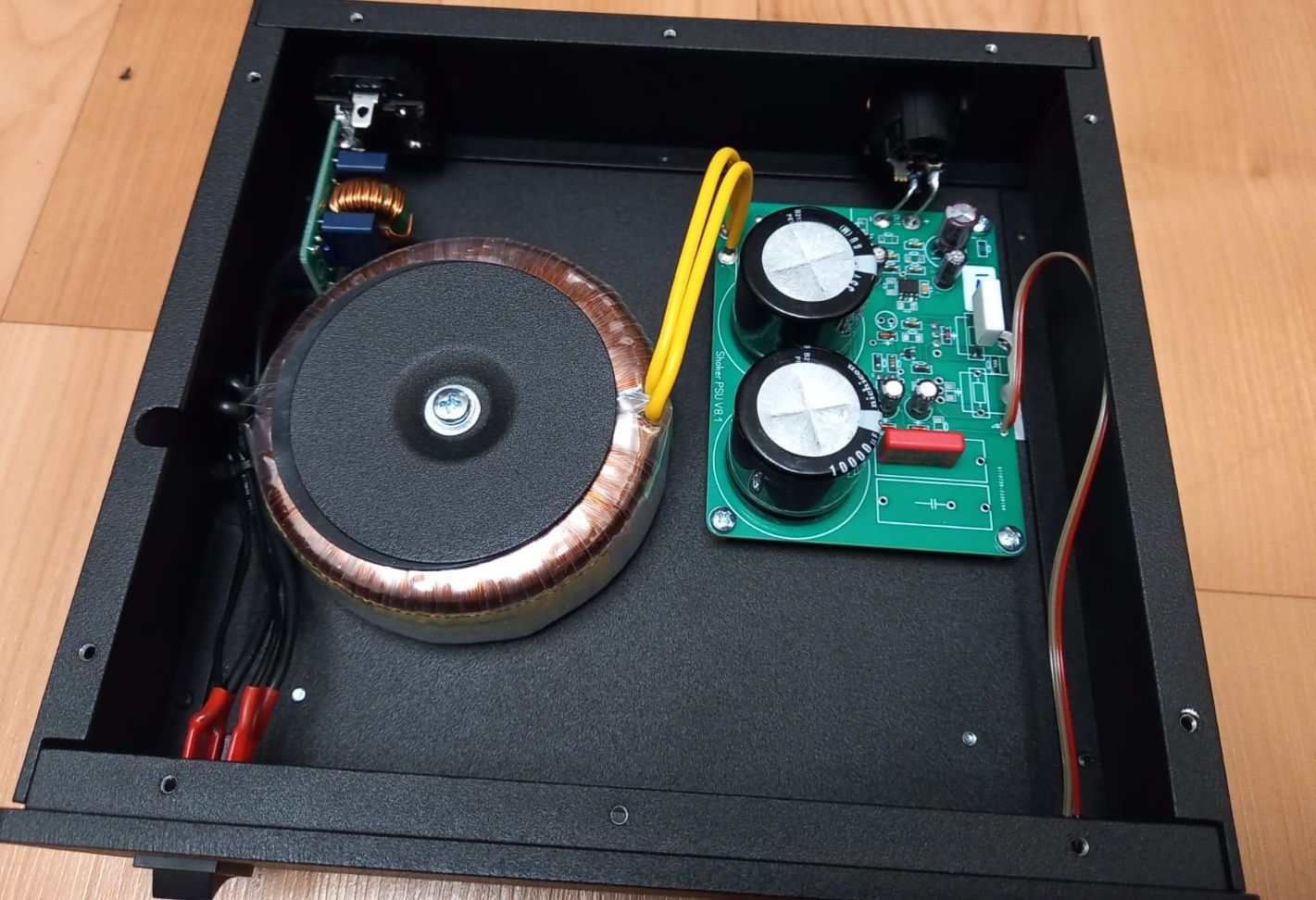 Полностью дискретная плата 12в, транс 4А, фильтр помех, разъёмы neutrik, разводка chord, светодиод а-ля naim ![]()