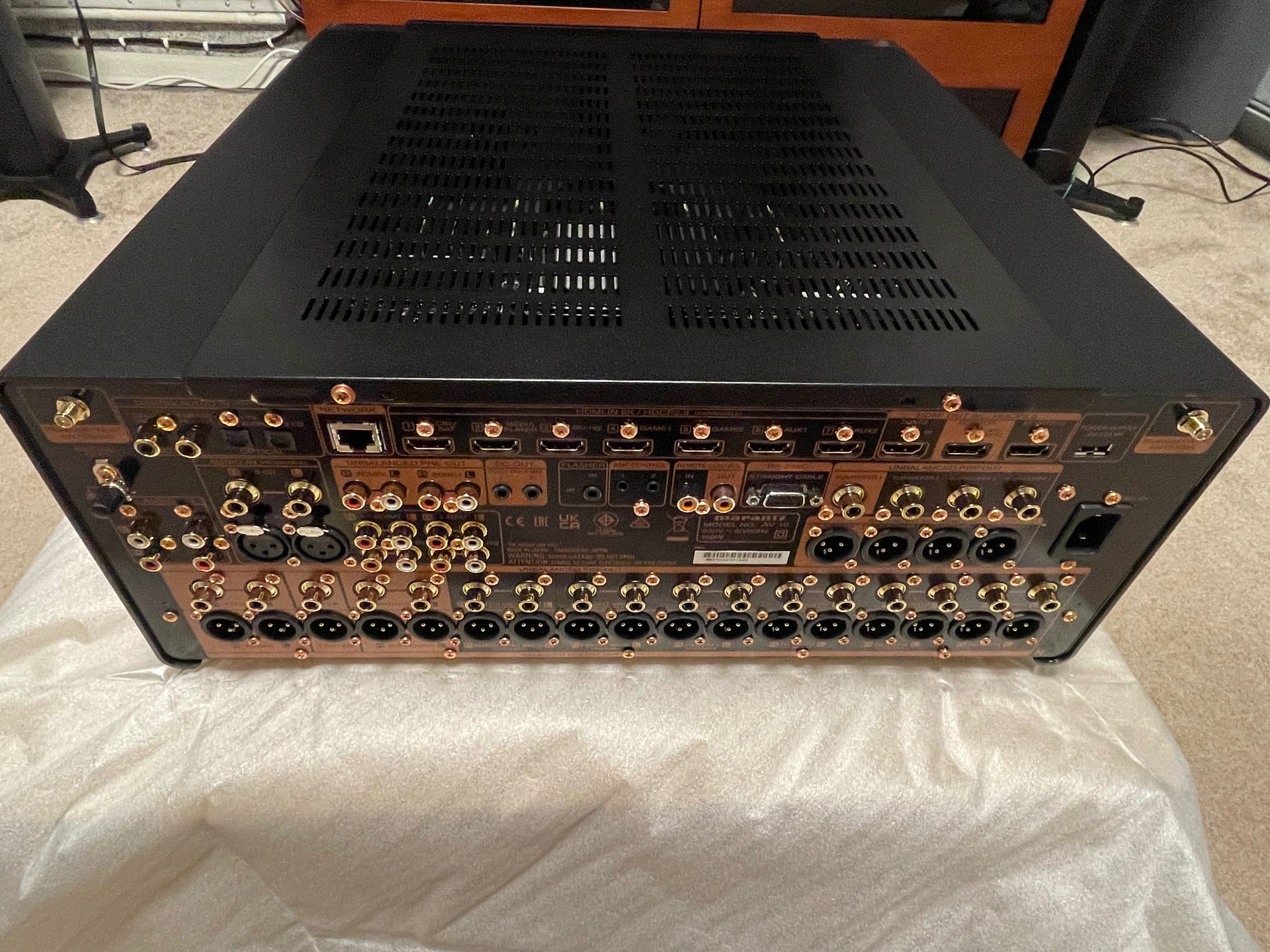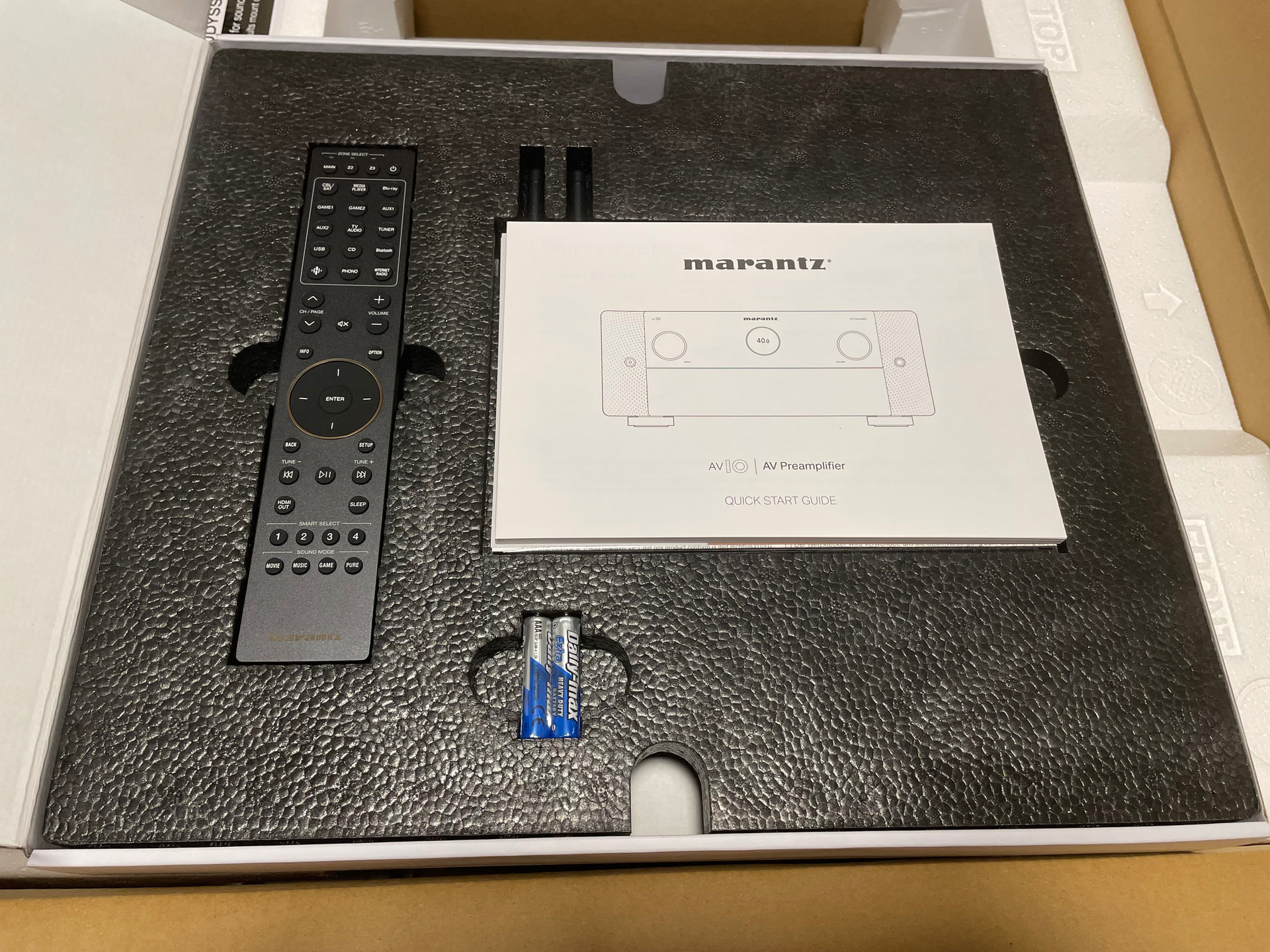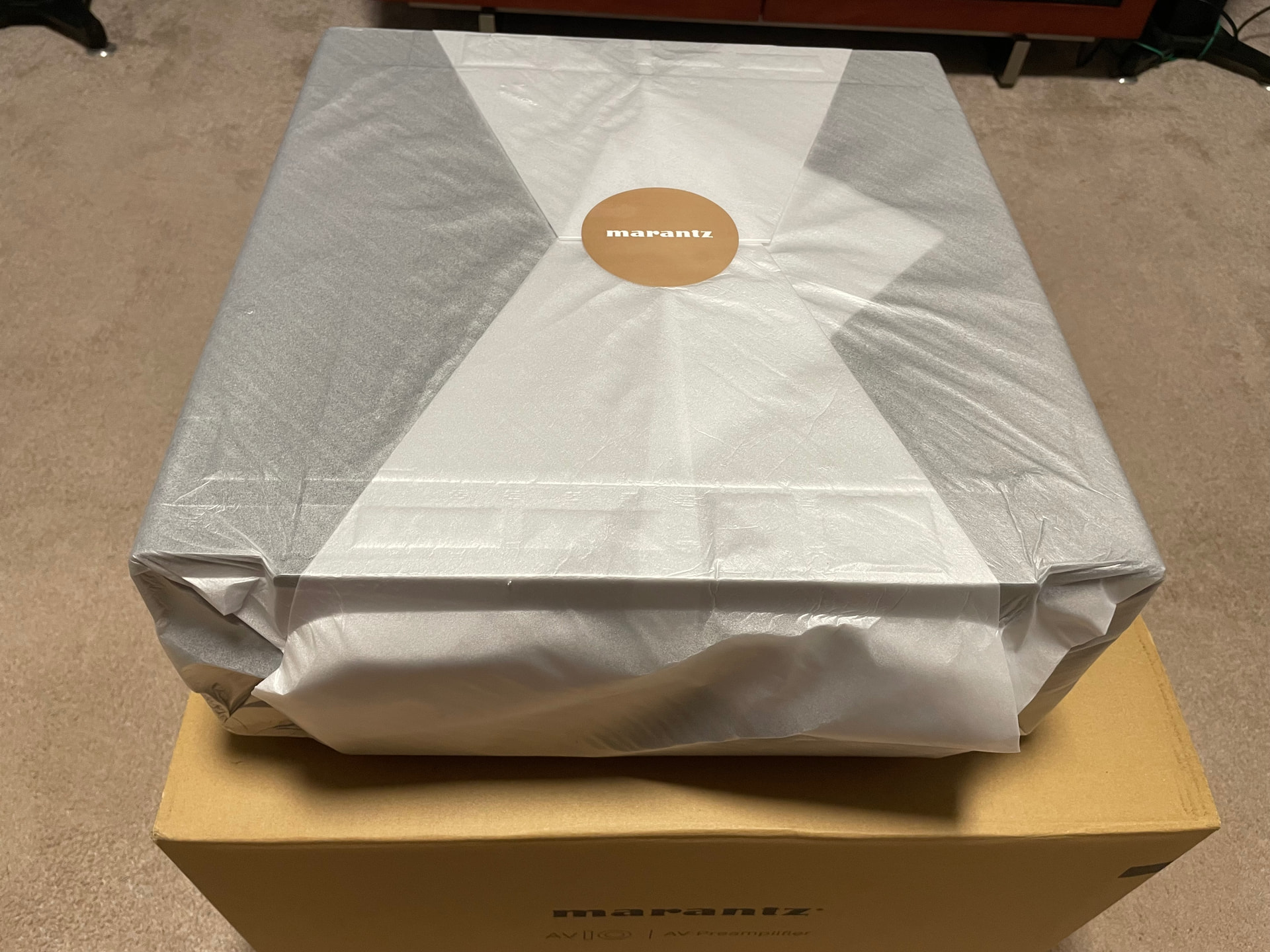 Очень жирная для меня покупка. Просто на пределе. Надеюсь, что конечная. Процессор Marantz AV10. 17 кг живого веса. Сделан как танк. Gene с Аудиохоликс хвалит и вроде сам с таким живет. Будем тестить.