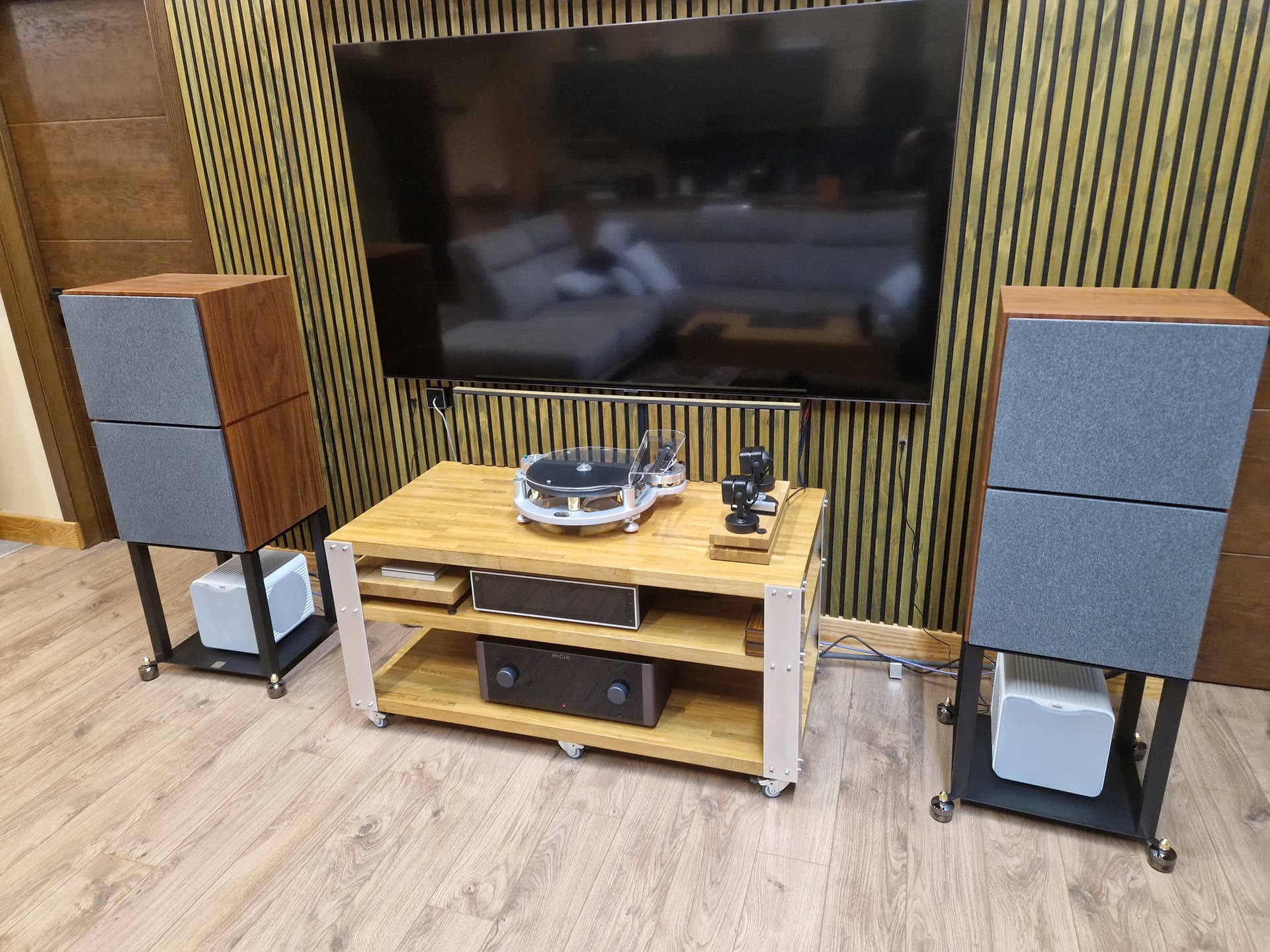 я ничего не утверждаю, возможно, это связано с конкретными особенностями моей квартиры и низкочастотных вибраций от системы кондиционирования, но стенд очень заметно повлиял на звук, сработав как виброразвязка, чего я, конечно, совершенно не ожидал ![]()
