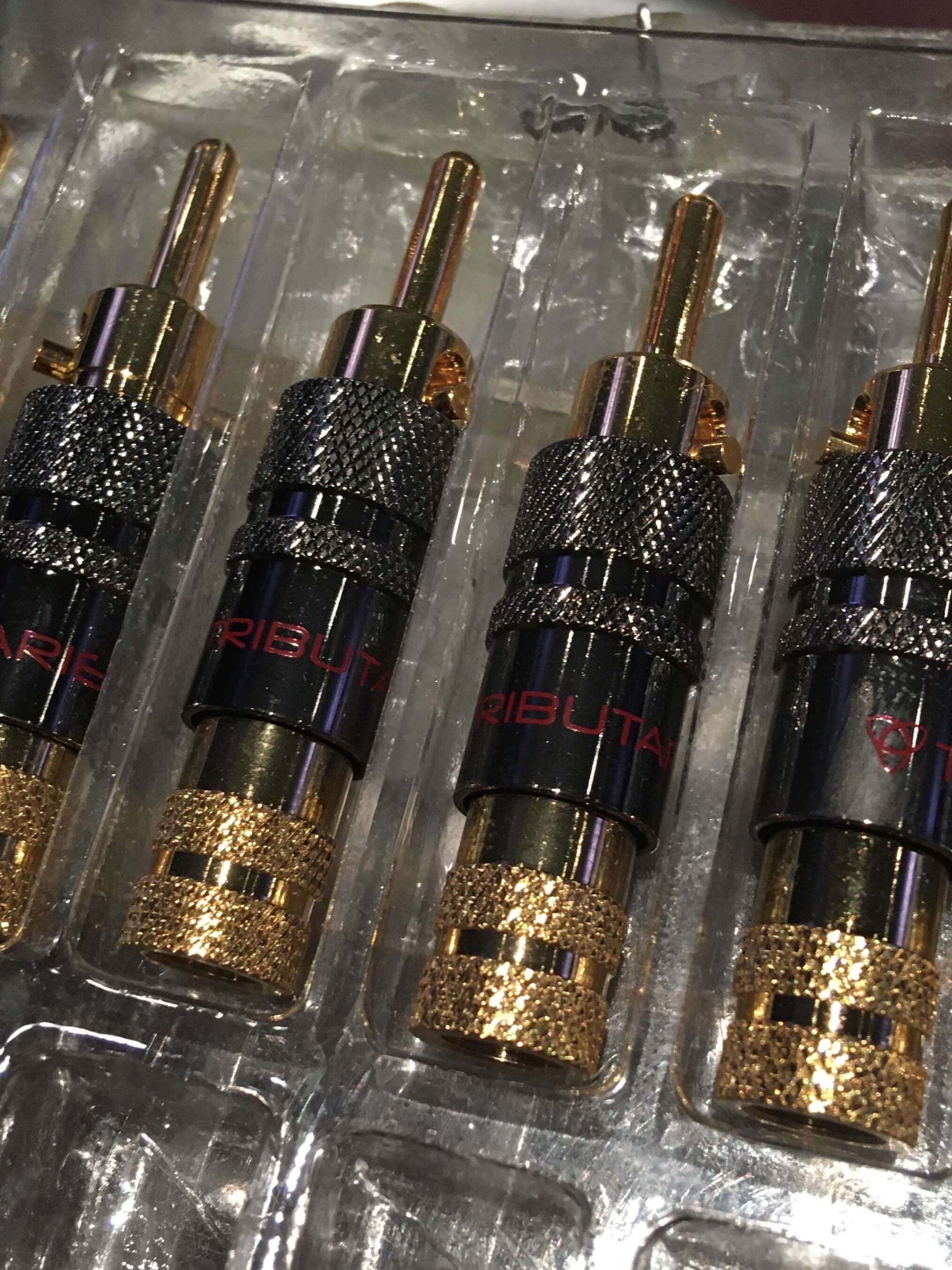 спасибо @Skitliv за разъёмы! Очень надёжно крепятся в порты колонок - даже не шевелятся. Изменения в звучании не услышал, до этого в колонки втыкался голый провод.