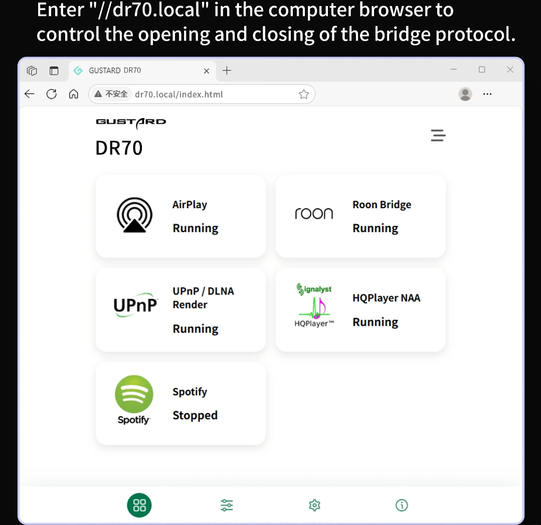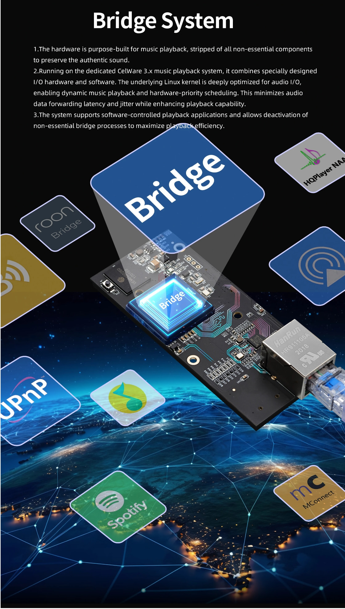 Стриминговая платформа от Cellware (как у топовых моделей Gustard) - Roon бридж, Airplay, NAA, DLNA(UPNP-AV). В режиме DLNA доступны два рендерера, один из которых OpenHome (возможно управление из OpenHome приложений, например Linn, MPD, Esoteric и тп).
