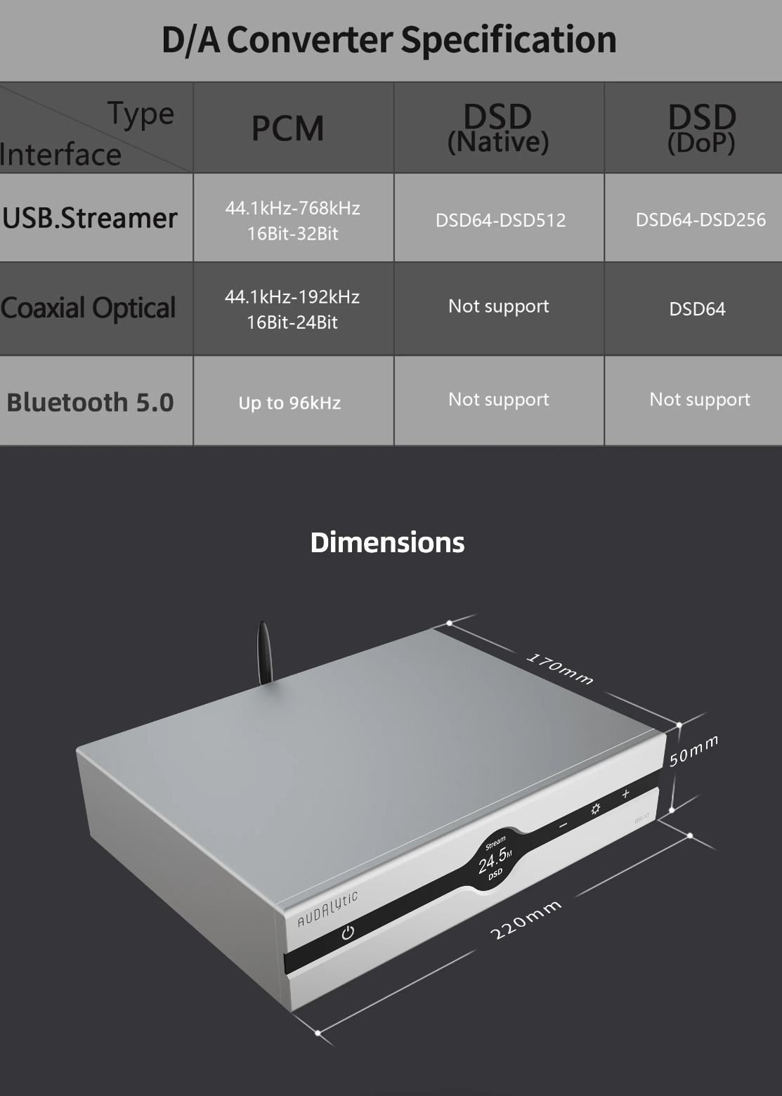 Хайрез высоких битрейтов и DSD только через USB или сеть.