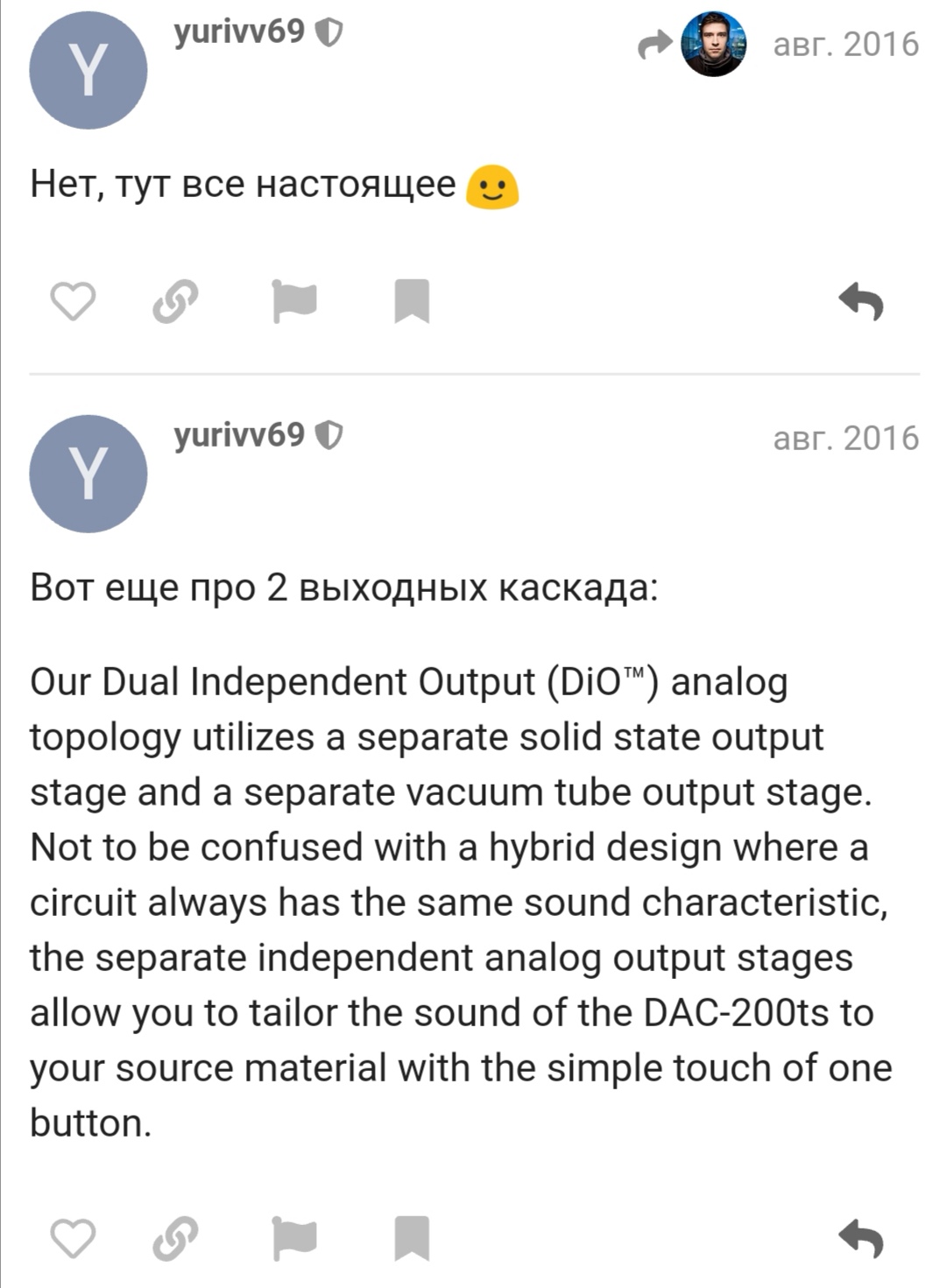 Мой товарищ тоже долго искал свой звук и конечную …,что только не было у него!В результате Шабад построил ему DAC на 45-й лампе и на лампе 2A3 (переключением выбирается) + сделал из филипка 930-го хороший транспорт .И все мытарства закончились.