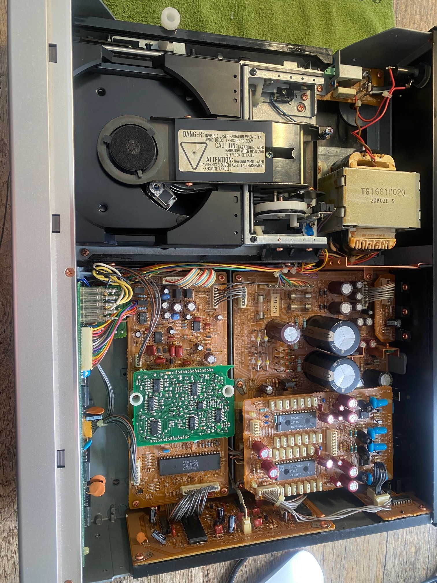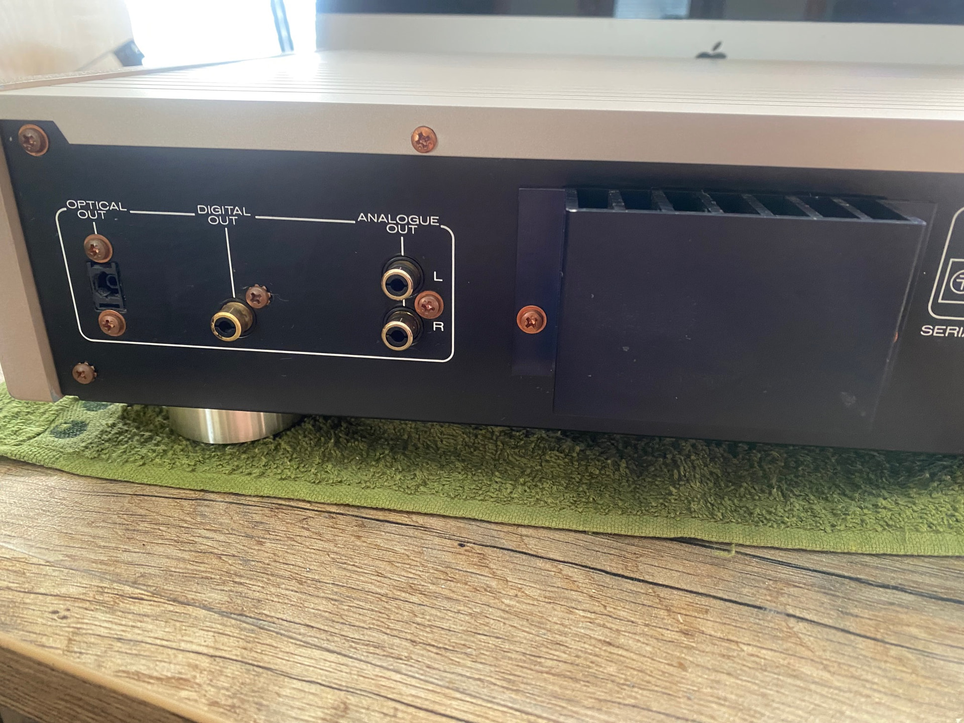 Топовый проигрыватель сд дисков- вeрxняя модель компании в линейке 1988 года. Произведена замена всех пассиков открывания лотка. Материал пассиков: эластомеры японского xимичеcкого концерна Kurаrаy Nоritakе. Лучший DАС- ТDА 1541-А Singlе Сrоwn, топовые отобранные компоненты, тяжелые фрезерованные ножки.В механизме привода используется тип CDM-1, разработанный компанией Philips Marantz. Однолучевой пикап с поворотным рычагом, отличающийся от обычного метода линейного слежения, линза изготовлена из стекла Rodenstock, которое имеет низкую аберрацию и отличные температурные характеристики для улучшения возможности пикапа. В части источника питания используется большой трансформатор, сравнимый с усилителем мощности, и электролитический конденсатор 68 000 мкФ x 2. В частности, электролитические конденсаторы изготовлены из новых материалов и подобраны с учетом качества звучания. Шасси изготовлено из литья под давлением и имеет прочную многослойную конструкцию, состоящую из литых боковых панелей, нижней пластины толщиной 0,1 дюйма (3 мм) для снижения вибрации. В верхней крышке используется эксклюзивная структура ARC (Aluminum Faft Ceiling) компании Marantz, а конструкция из 3 частей с плотским срезом улучшает прочность и распространяет режимы вибрации.