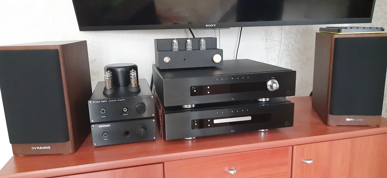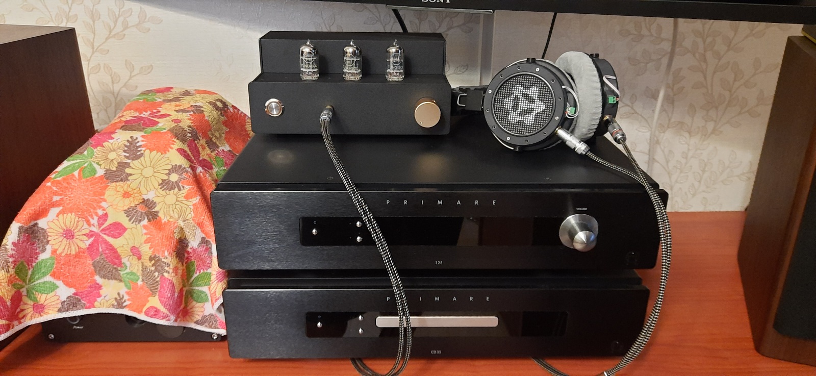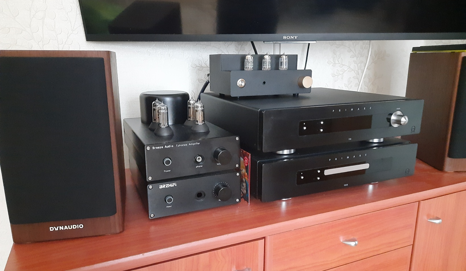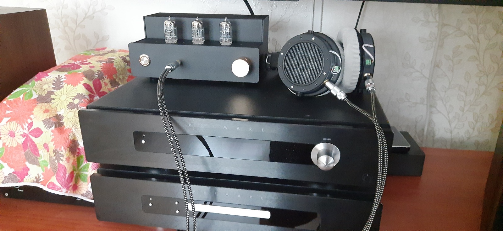 Два ЦАПа, куча кабелей и наушники.