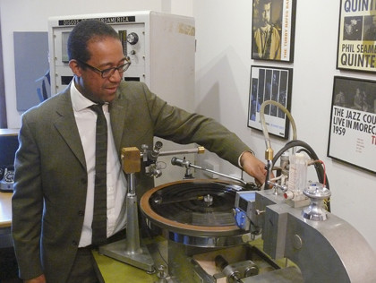 Владелец студии Даррел Шейнман показывает, как нарезаются лаковые диски