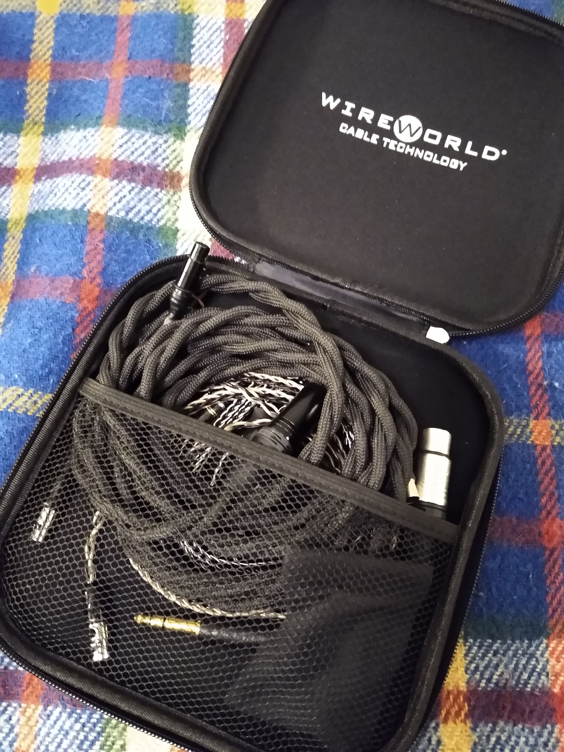 Наушники симпатичные с виду, сделаны аккуратно. Для тура укомплектованы тремя наборами амбушюров (серые и черные велюровые и черные из перфорированной кожи) и набором из трех разных проводов (все как один — балансные) и несколькими переходниками на разные разъемы. Упакованы в очень удобную сумку.