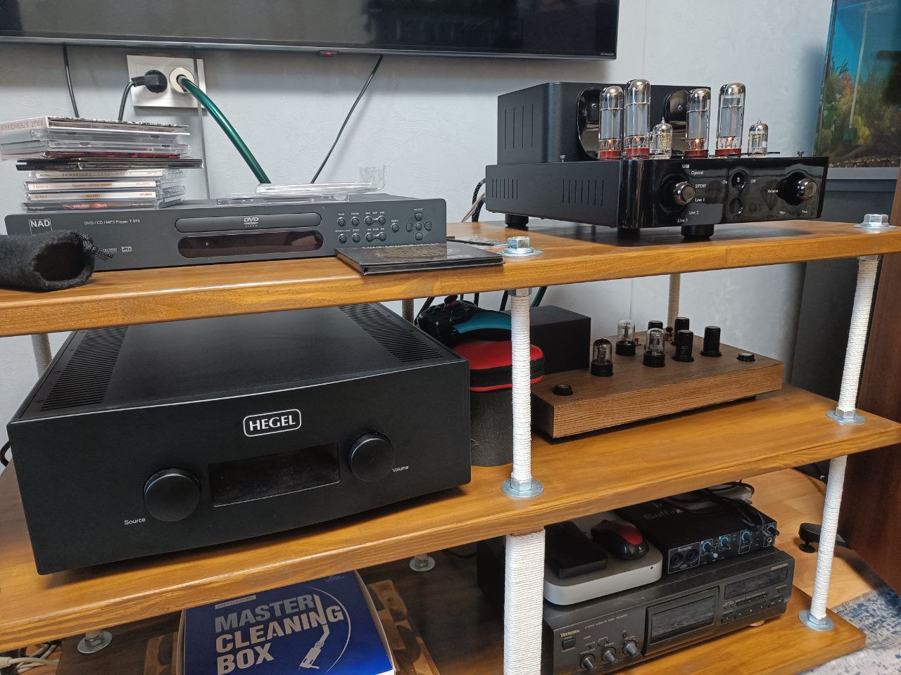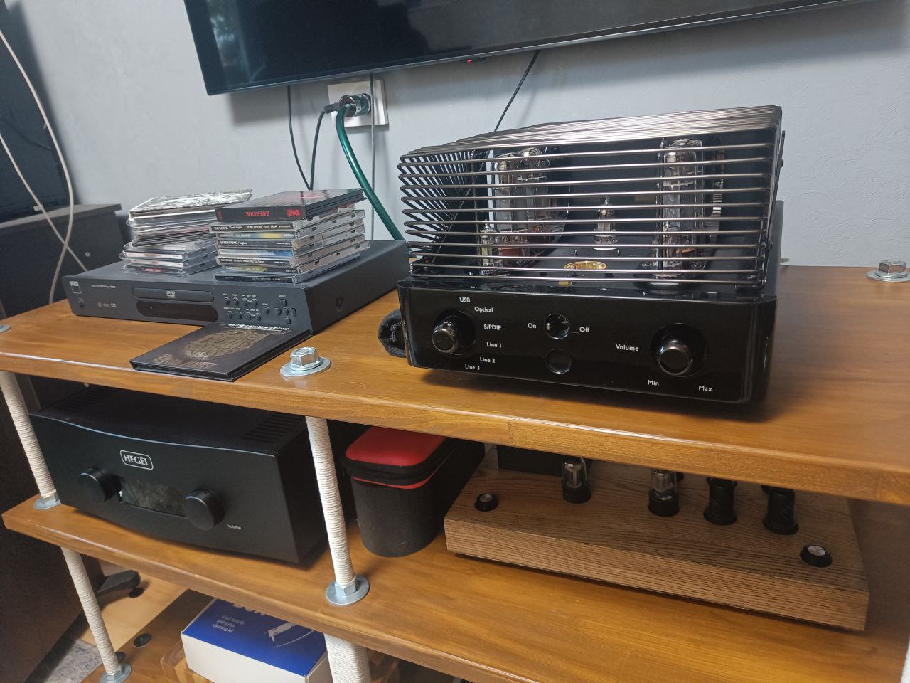 Чисто для проформы в последний день переключил на свой усилитель. Звук Триода25 теплее и насыщенее в середине, а у Хегель само собой по краям (например на ударных) точнее, но это не значит что лично мне у Триода этой точности в целом не хватало.