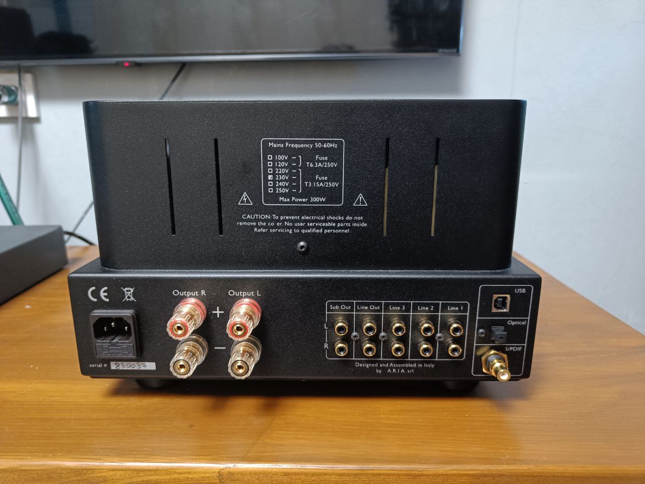 Хотя какие-нибудь деревянные боковины-накладки придали бы дополнительный привлекательности, как на мой вкус. Небольшой каплей дёгтя, пожалуй, является только ширина усилителя, из-за чего клемы зажимов для акустических проводов находятся очень близко: с лопатками не очень удобно, особенно с такими жесткими кабелями как у меня (медная моножила).