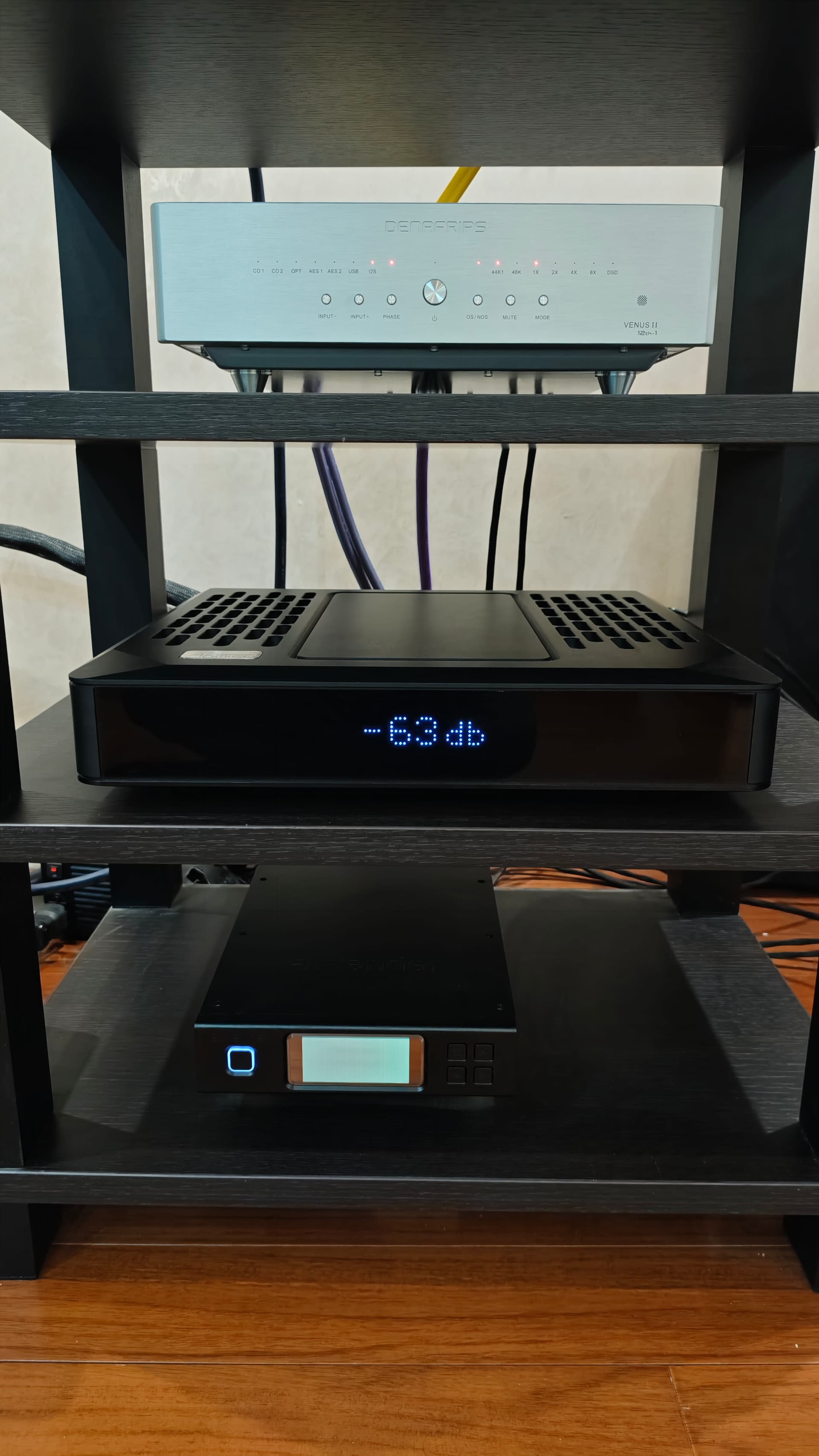 Файловый транспорт: Aurender N100H, CD-транспорт: Denafrips Avatar, ЦАП: Denafrips Venus 12th-1 II. Предусилитель: Musician Monoceros. Усилитель мощности: Sciber Amploi. Акустика: Spendor D7.2