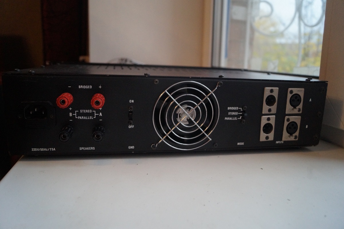 Внутри стоит вентилятор, он мне показался немного шумным, поэтому я провел эксперимент - отключил его и погонял усилитель на приличной громкости без него, и через два часа радиаторы стали буквально чуть-чуть теплыми - по всей видимости, вентилятор имеет смысл только на предельных мощностях. Радиаторы довольно большие, их хватает с запасом. Если нужно - подключу вентилятор без проблем, возможно лучшим решением будет включить резистор в цепь и просто сильно понизить его обороты.