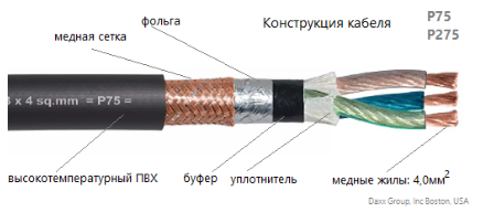 Плетение жил в проводнике в виде каната; Диэлектрик: Premium PVC (Tmax=105С), двойной, высокотемпературный ;
