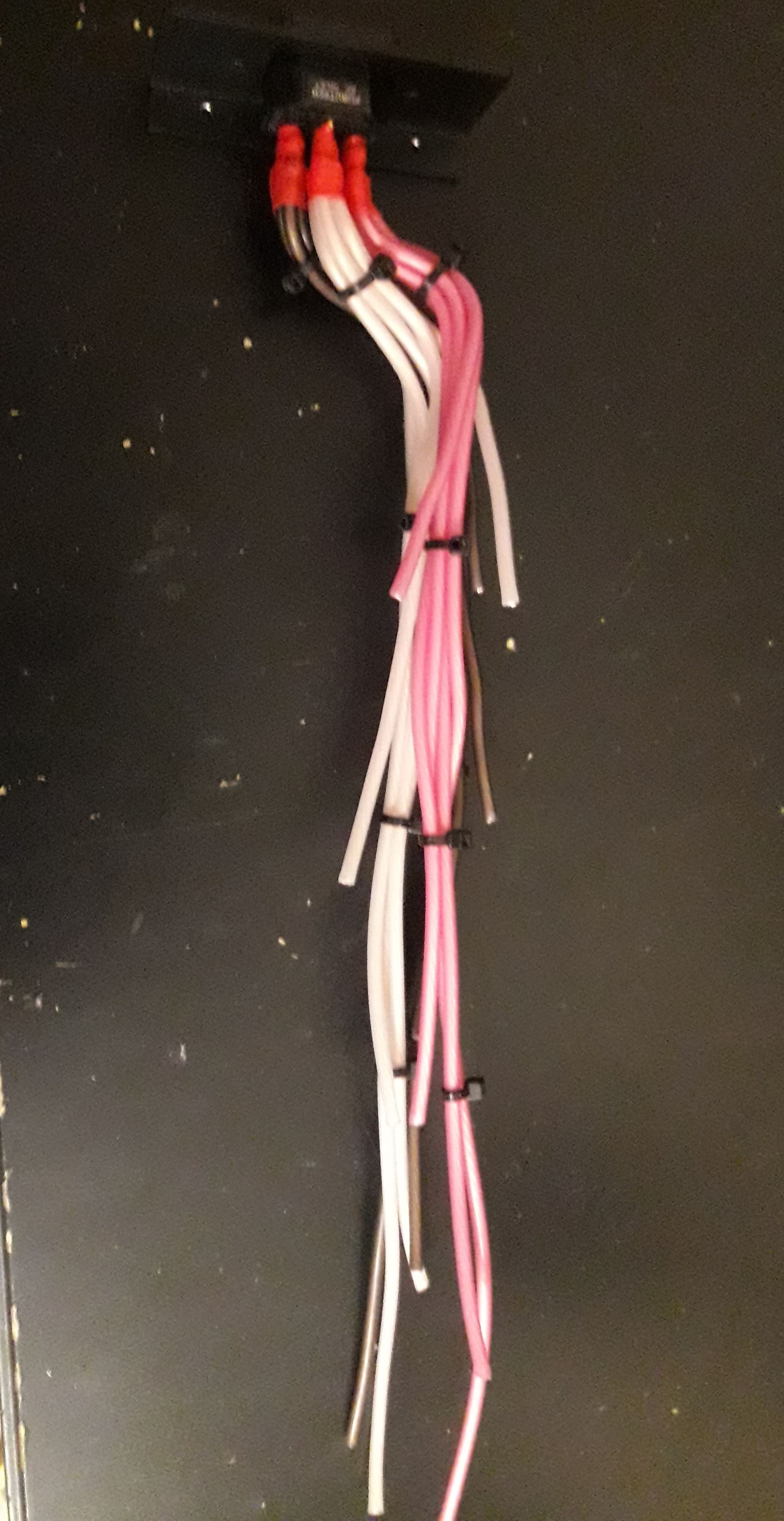 Ещё маленько фоток, в порядке юмора наверное. Вот так выглядит содержимое переноски на 5 розеток, разведённое со входного разъёма звездой. Жесть та ещё (и это ещё самая тонкая фуджикура какая была):