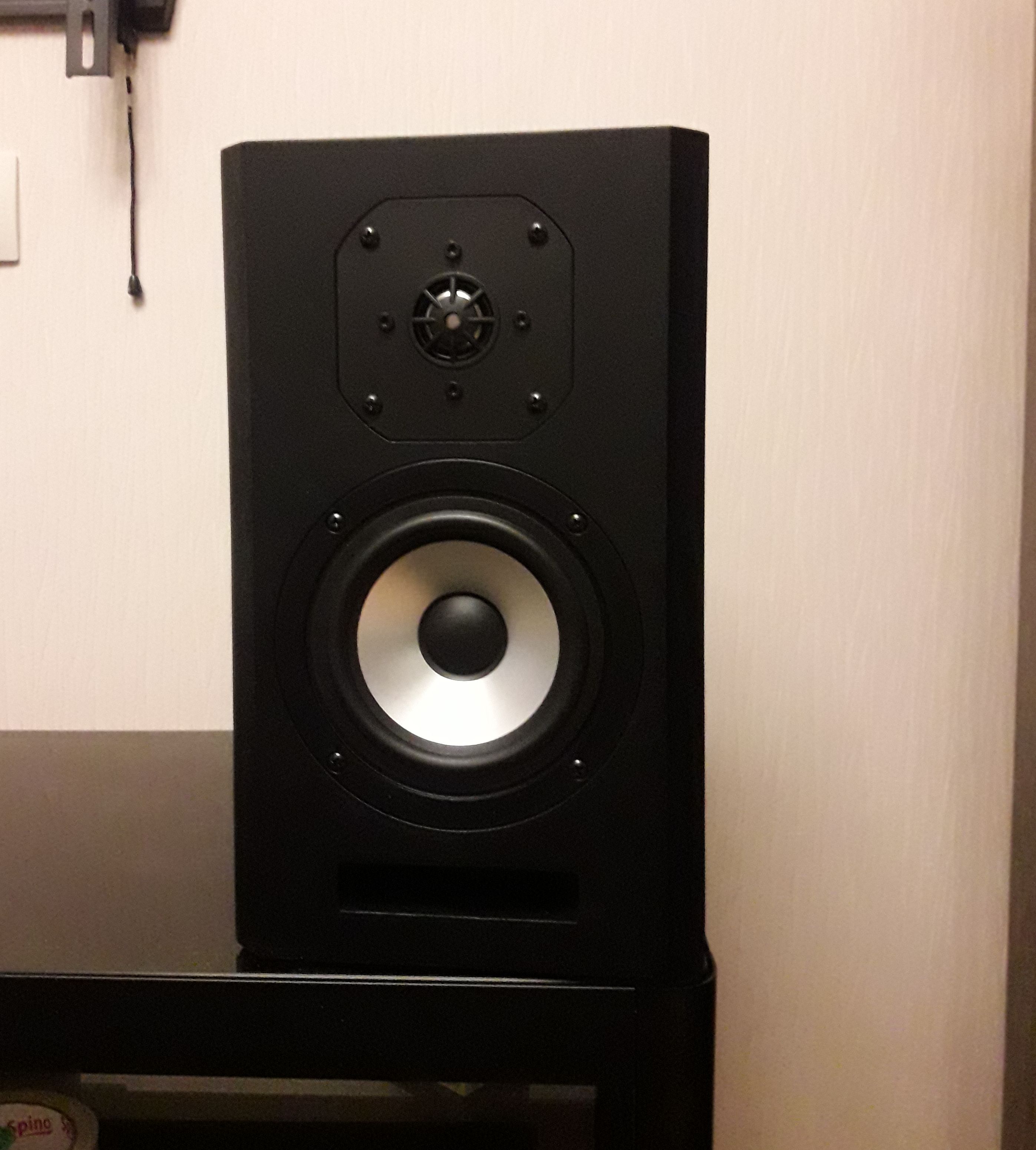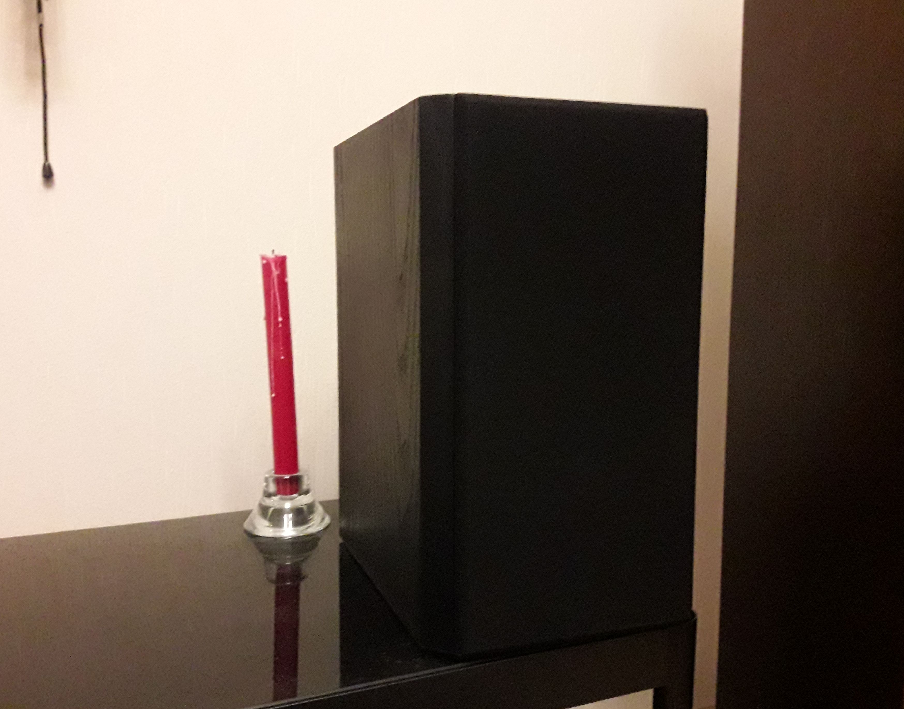 В результате получился довольно крупный (для такого басовичка) полочник, но всё равно вполне вменяемых габаритов. Бас от 40 герц, причём не притянутый за уши, а вполне себе настоящий, легко заполняющий даже небольшую комнату.