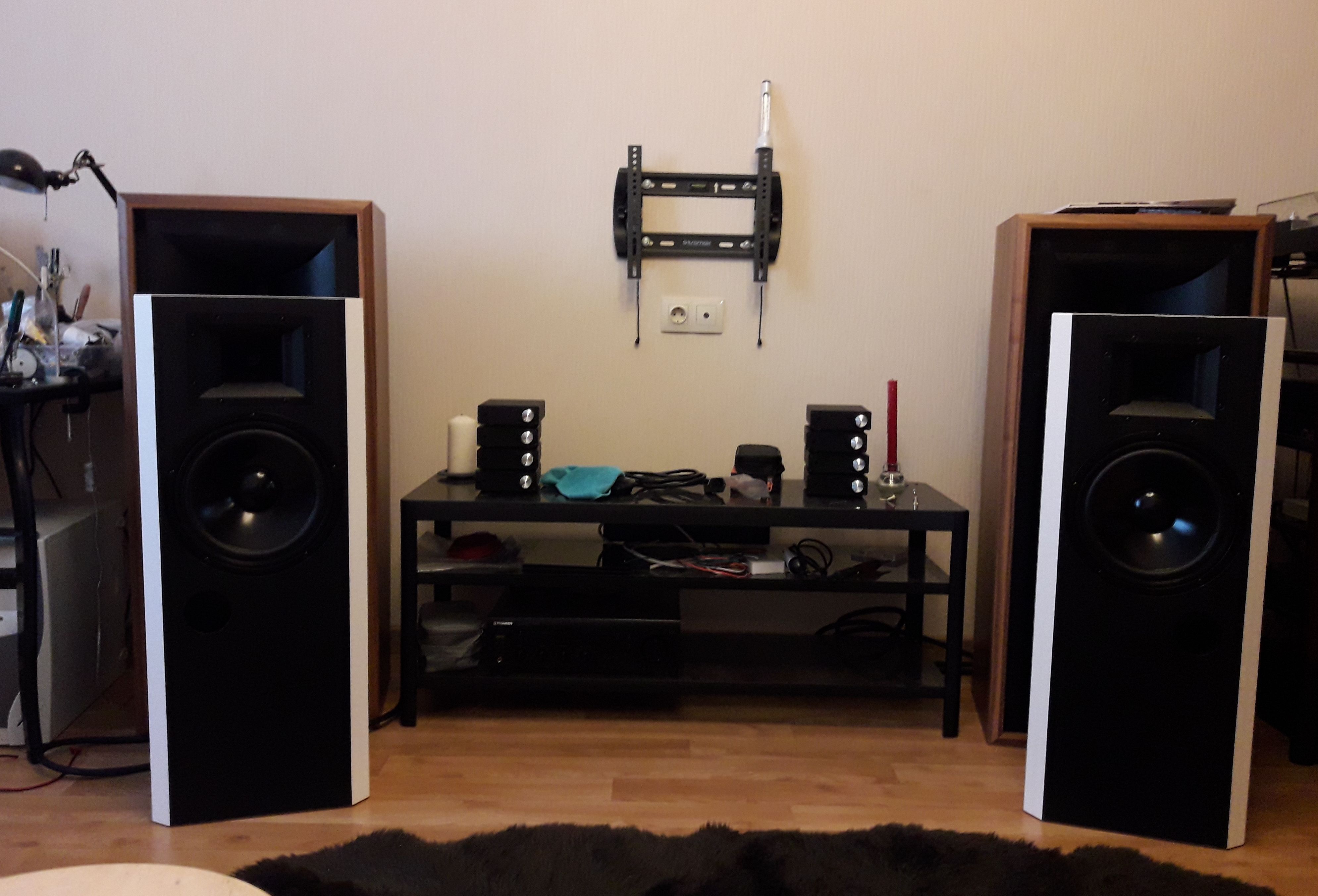 Конечно, АС получились не бескомпромиссными, что и не удивительно - басовик играет почти всю середину (до 2кгц) , а рупор выше 12к не играет вообще. Тем не менее звучит всё это просто шикарно, с каким то нереальным эффектом погружения. Я когда в стерео это всё собрал на чистовую, на депеш моде залип на целый альбом, хотя хотел просто контрольно заценить по быстрому.
