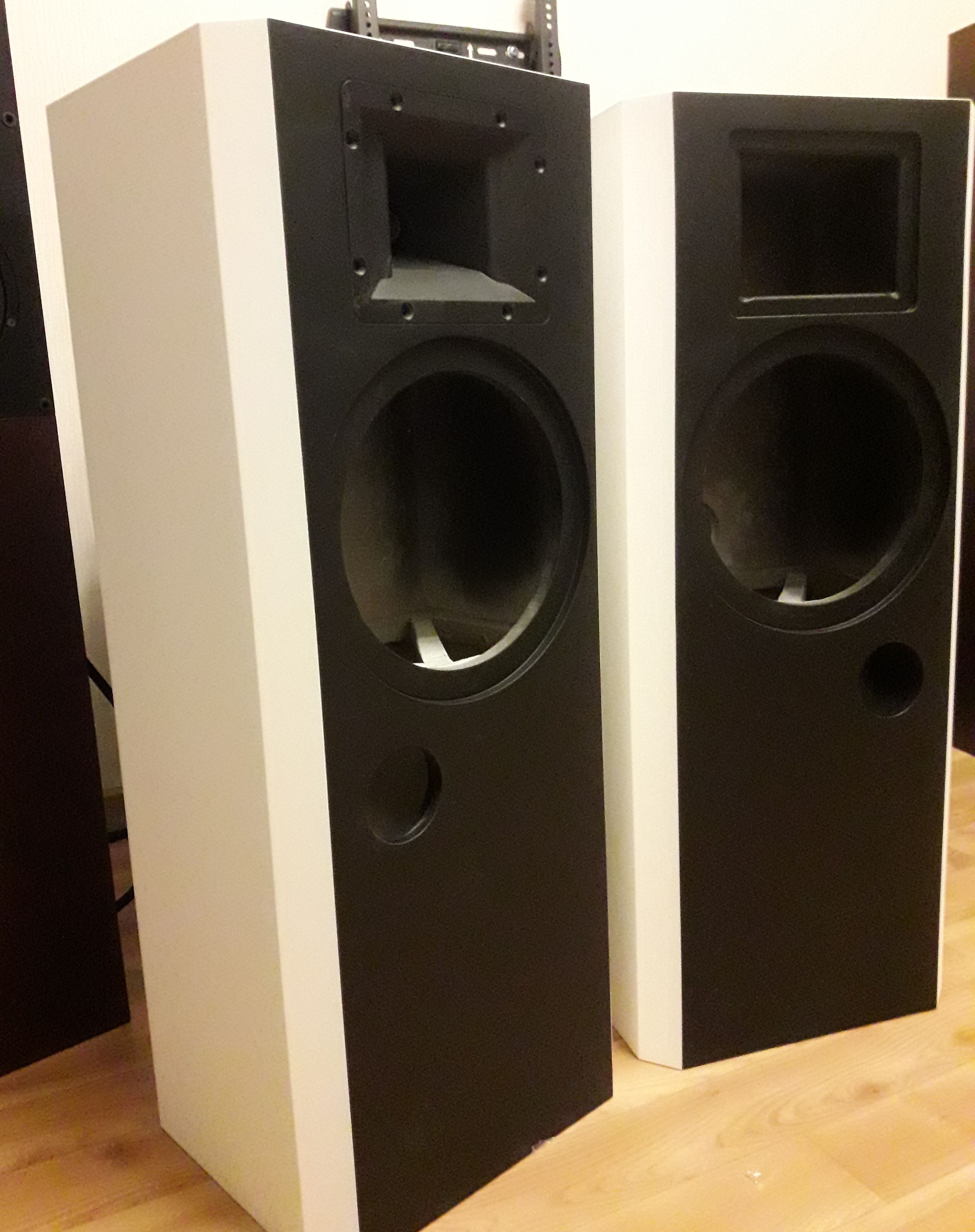 Крупные концептуальные двухполосные напольники, опять таки на визатонах. Большой 10" басовик + среднего размера рупор с фенольной подвижкой.
