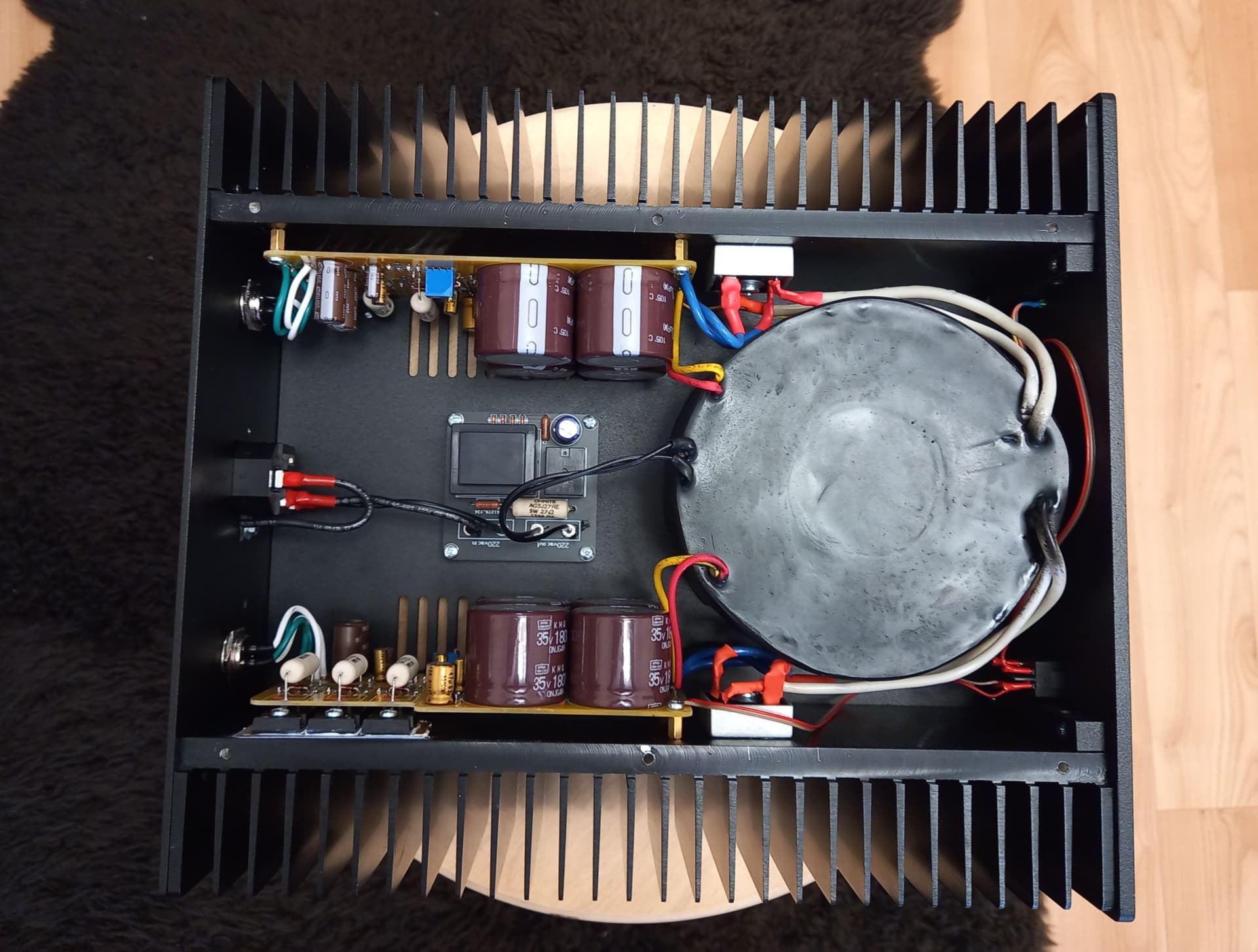 Фото плат я кидал выше. По конкретно этому БП - силовой трансформатор для экономии времени и бюджета был взят серийный, на нём было вручную домотано всё необходимое, после чего он был залит, для уменьшения вибраций, шума, и улучшения охлаждения.