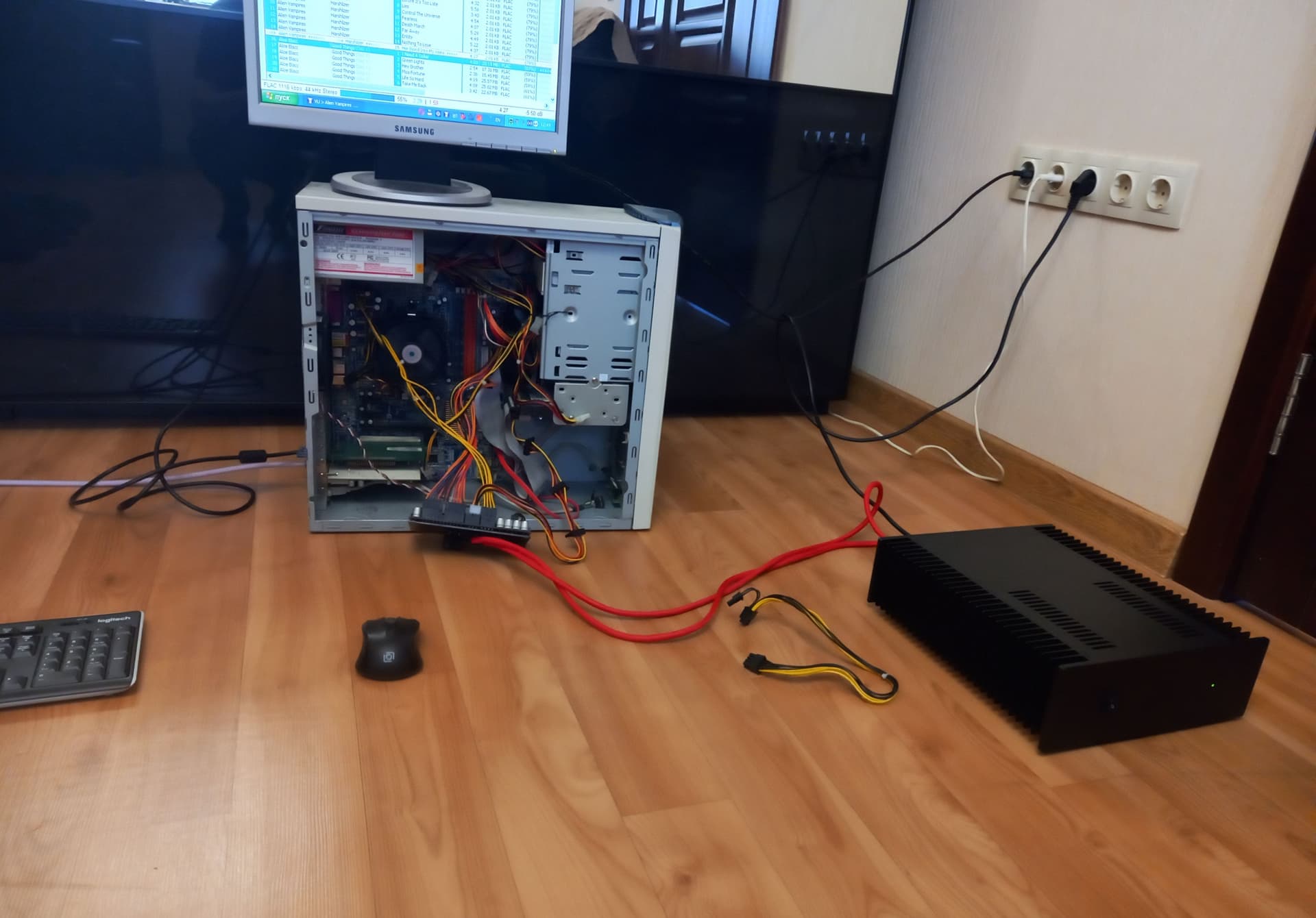 Сравнил полученную связку (ЛБП + пикобокс) со штатным импульсником компа. Основной комп ставить не стал, он сильно мощный, воспользовался вторым компом, который у меня чисто для измерений обычно служит: