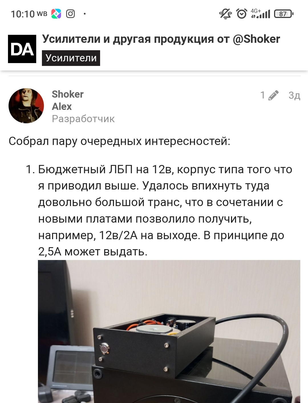 “1. Бюджетный ЛБП на 12в, корпус типа того что я приводил выше. Удалось впихнуть туда довольно большой транс, что в сочетании с новыми платами позволило получить, например, 12в/2А на выходе. В принципе до 2,5А может выдать.”