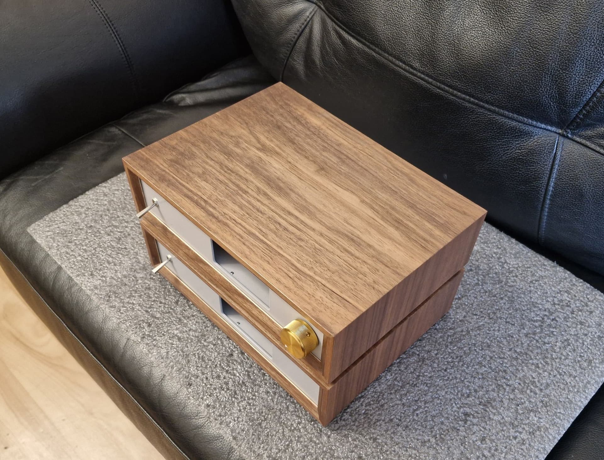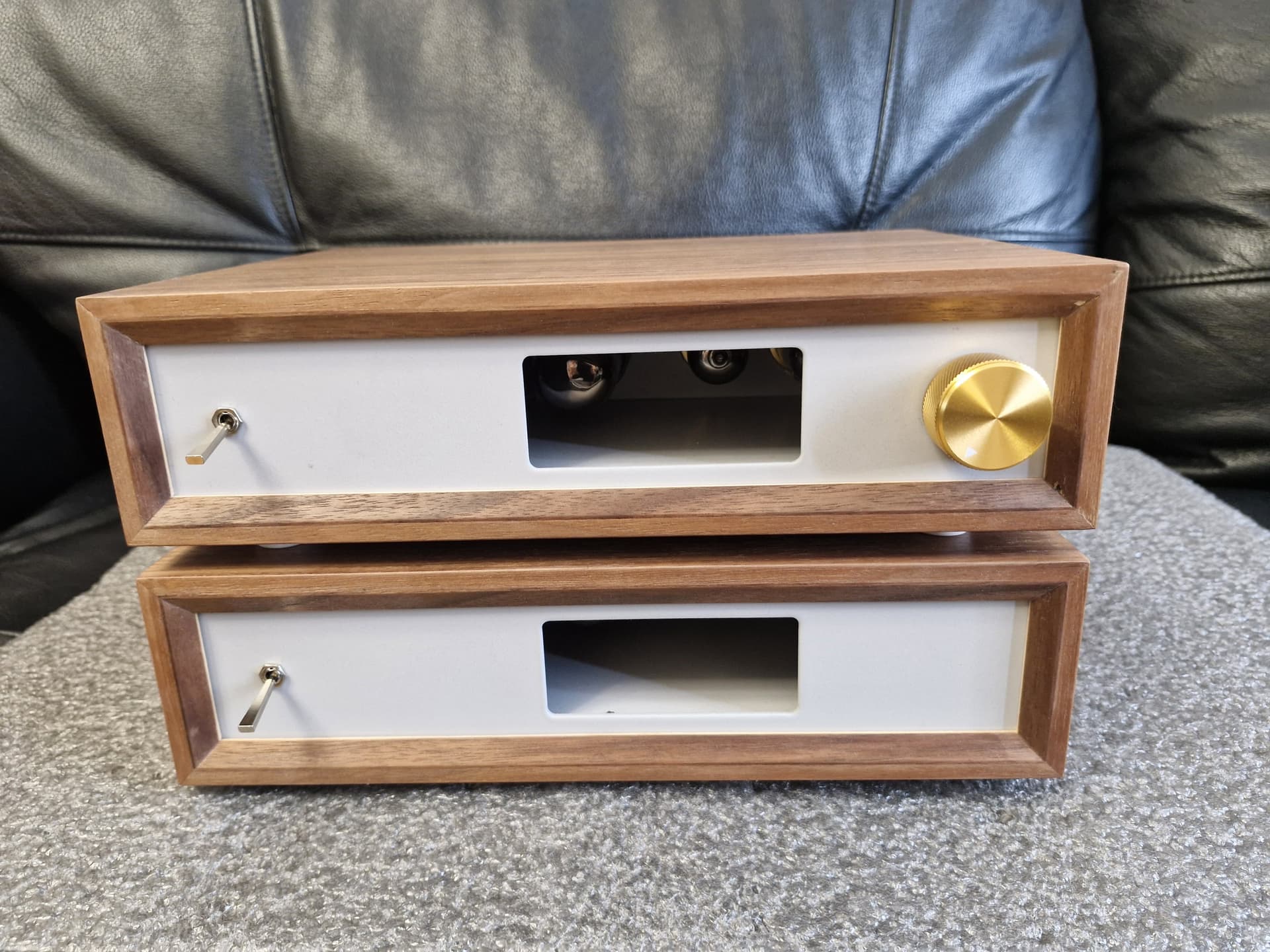 Концепт мне понравился и я сделал ещё одну такую же коробочку но с регулятором громкости на входе. Получился очень вкусно играющий предусилитель, который пока встал в мою основную систему.
