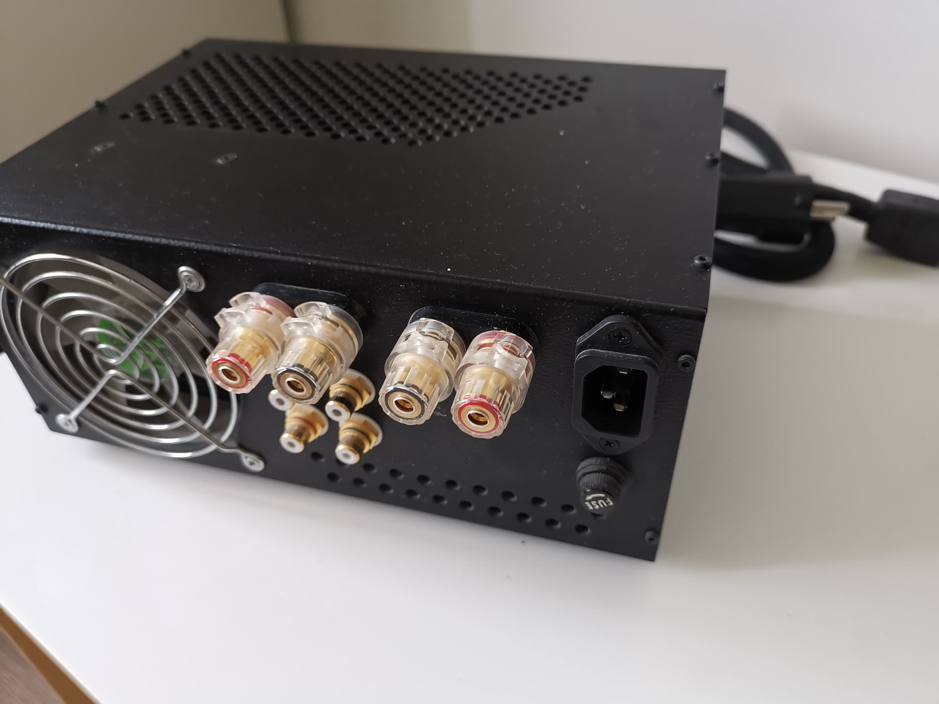 Особых требований к окружающей среде у этого усилителя нет тем не менее надо помнить что он тоже прилично греется и ставить его в закрутую стойку или накрывать чем то не стоит. Можно ставить блок усилителя на блок питания, это проблем не вызовет. В усилителе так же есть термозащита которая снизит ток покоя выходного каскада до нуля при перегреве.