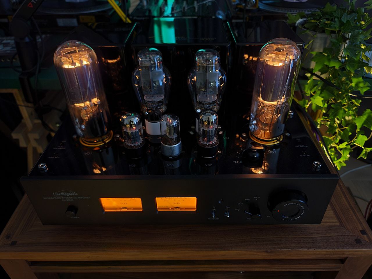 Доставщик был в замешательстве когда выгружал большую тяжёлую коробку прямо у моей двери, спросил не станок ли это, уж больно тяжёлый. В этот день в гости должен был прийти друг и я решил дождаться его чтобы поставить усилитель на стойку. Первое впечатление от Line Magnetic оооочень приятное. Я бы сказал что редко когда встречаешь вещь которая приносит такое первое впечатление. Мы с другом вдвоем поставили его на верх моей стойки из ореха где он вписался просто идеально и я оставил его на сутки, что просыхал от конденсата