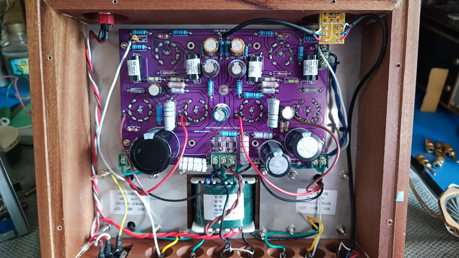 Проведён лёгкий рекап по советам выше. На место межкаскадных конденсаторов позаимствовал идею из этой темы (спасибо @VLAD66) - и MKP, и Miflex, и стоят недорого, и размер прям вписался. Две пары электролитов заменил на Nichicon Muse, с остальными ёмкостями туго.