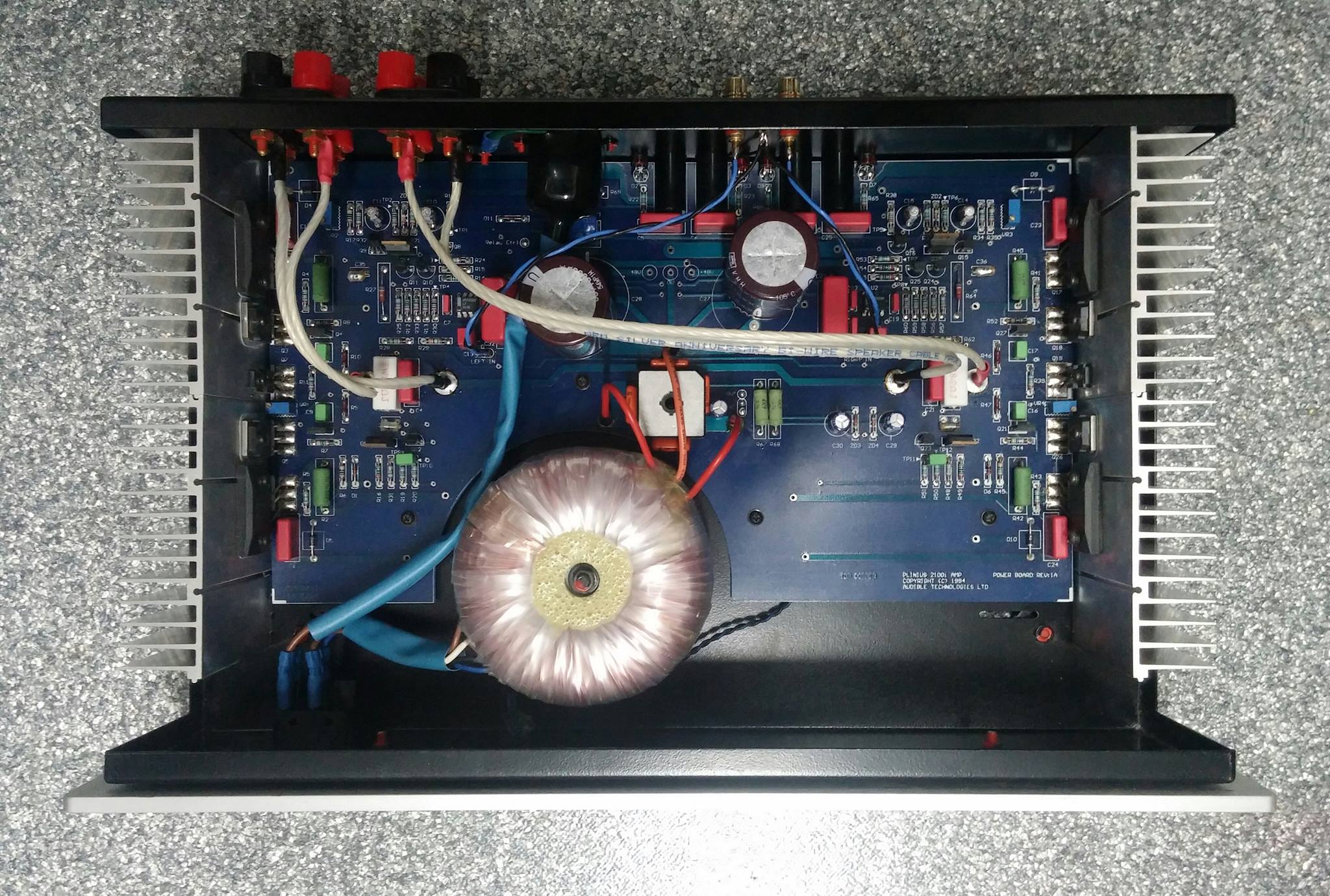 Такое ощущение, что после апгрейда у него большие конденсаторы не родные и провод до аккустических терминалов другой. Но это не суть. Там на плате p7 проставлена маркеровка Plinius 2100i, поэтому логично предположить, что общая схема и родные детали в p7 будут те же самые, что и в 2100i. Плиниус вообще практиковал подобное, чтобы расширить модельный ряд. Добавят фотокорректор и вот уже другая модель, при том, что усилительная часть осталось той же, что и была. Или мой 8100 - это 2100 мк2, только с немного другим дизайном морды и более качественными клеммами.