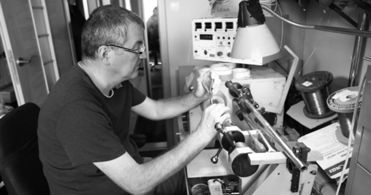 Интересно, что этот мужик делает за станком(в очках) трансы мотает ?