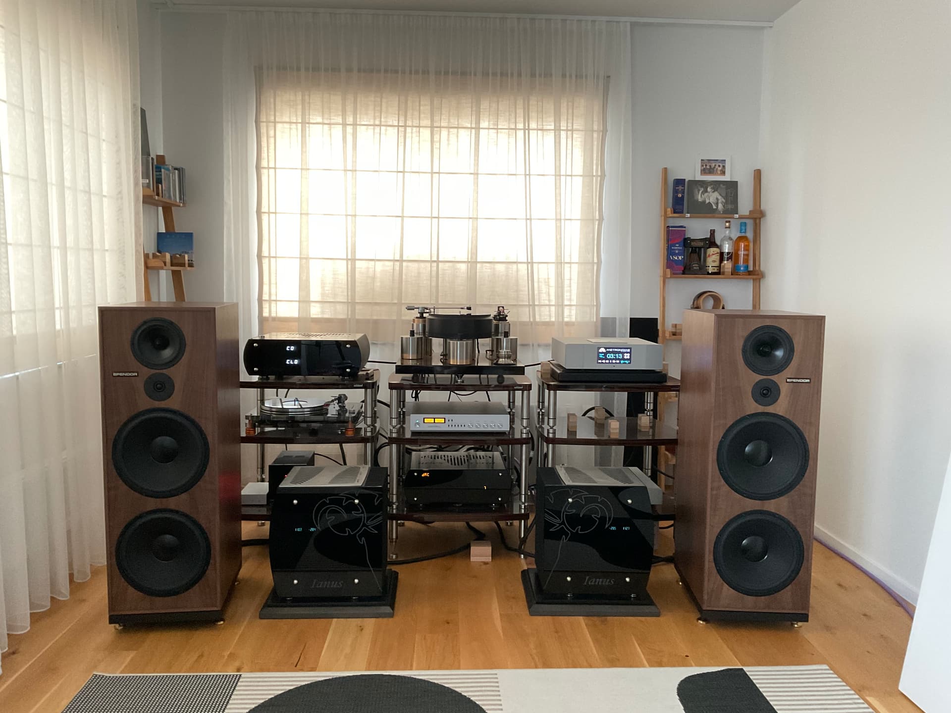 Если говорить о усилении, это Accuphase в активной конфигурации. C-3850, F-20, 2 штуки A-75 дают законченную систему с поразительным результатом.