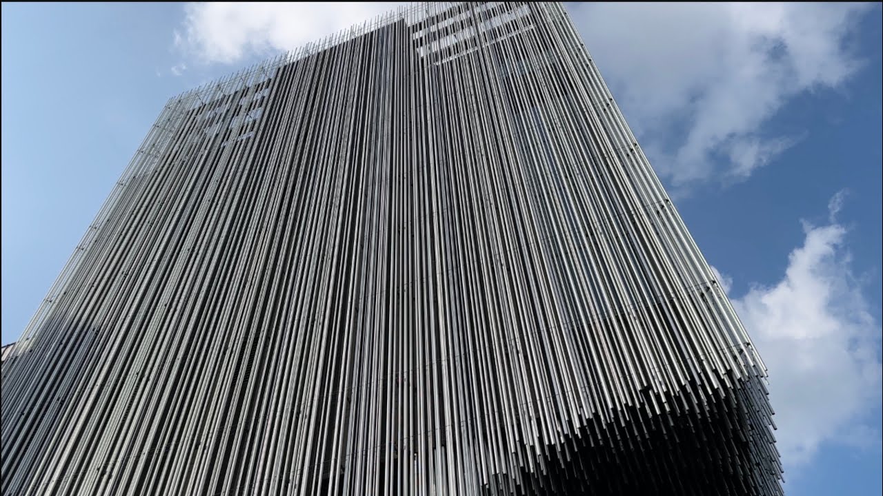 Здание Audeum создано с установкой на выверенную минималистичность и долговечность. Архитектура сознательно сдержанна: минимизировано количество видимых окон и инженерных систем. Фасад выполнен из алюминиевых труб, которые со временем и под воздействием смены сезонов приобретают естественную текстуру. Свет, проходящий сквозь тонкие вытянутые элементы, напоминает солнечные лучи, пробивающиеся сквозь древесную крону. Меняющееся освещение, возникающее за счёт случайного расположения труб, превращает Audeum в чувственное пространство, вызывающее ассоциации с природой и выходящее за рамки привычной архитектуры.