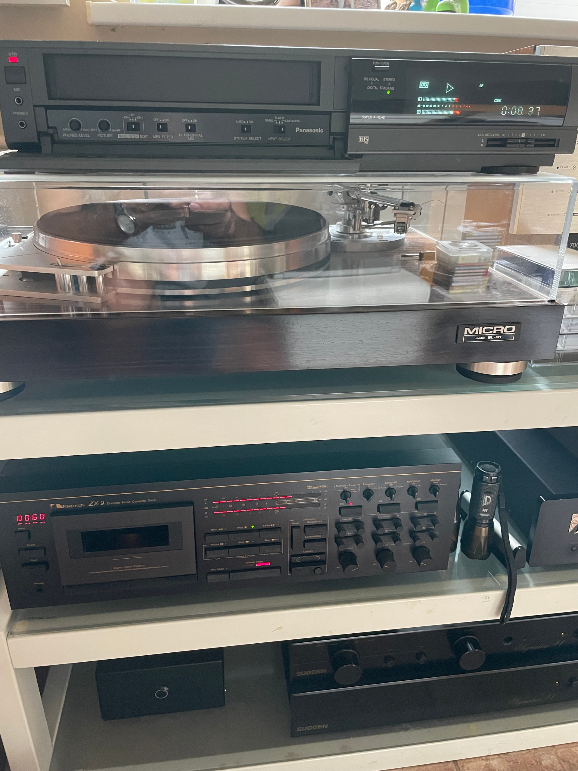 После, уже в домашней системе был проведен сравнительный тест с моей декой Nakamichi ZX9, запись сравнивалась та же самая, кассета для деки была записана с того же катушечника, с той же катушки на отстроенной деке Nakamichi ZX7 на новую кассету первого типа Sony XI (премиальный первый тип). Вот в этом сравнении видак показал себя на одном уровне с девяткой, практически уровень качества воспроизведения тот же, у девятки совсем чуть лучше обозначен верх и чуть четче обозначены контуры инструментов, причем на записях сделанных с винила эта разница нивелируется.