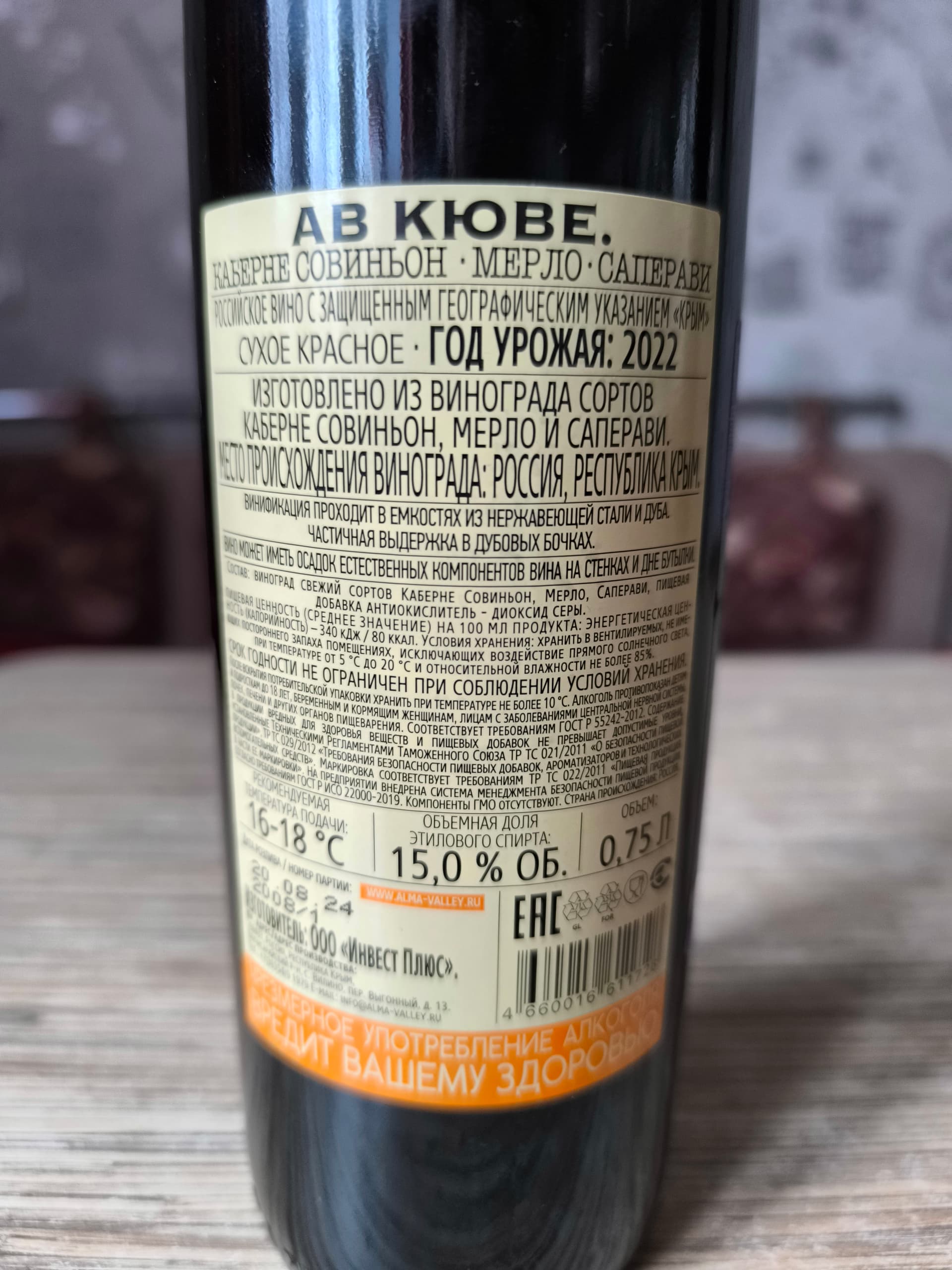 Вкус не противный, но больше в “кислинку”, я бы сказал вино для пикника, с шашлыками, пластмассовыми стаканам и т.п. На приятный вечер дома не подходит, довольно “пьяное”, но спиртом не отдает. 500₽ своих стоит, не более того. Состояние “с бодуна” среднее