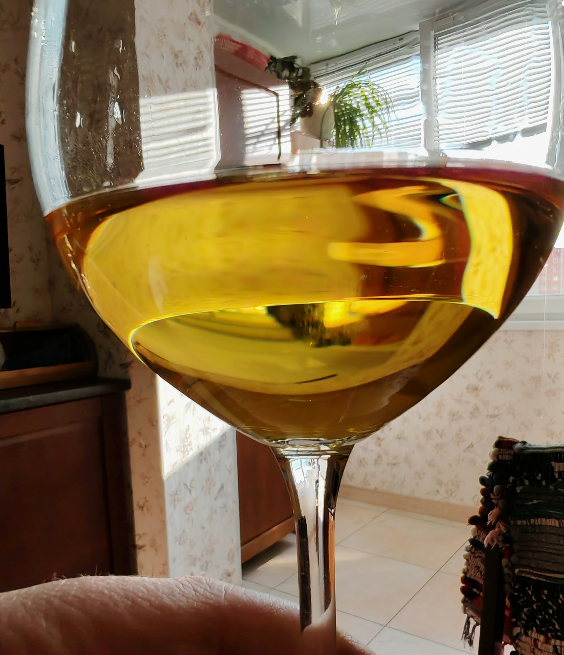 . Это освещение осеннее прибавляет, так-то белый,…. почти. Давно не пил сладких или портвейнов, но в настроение очень даже.