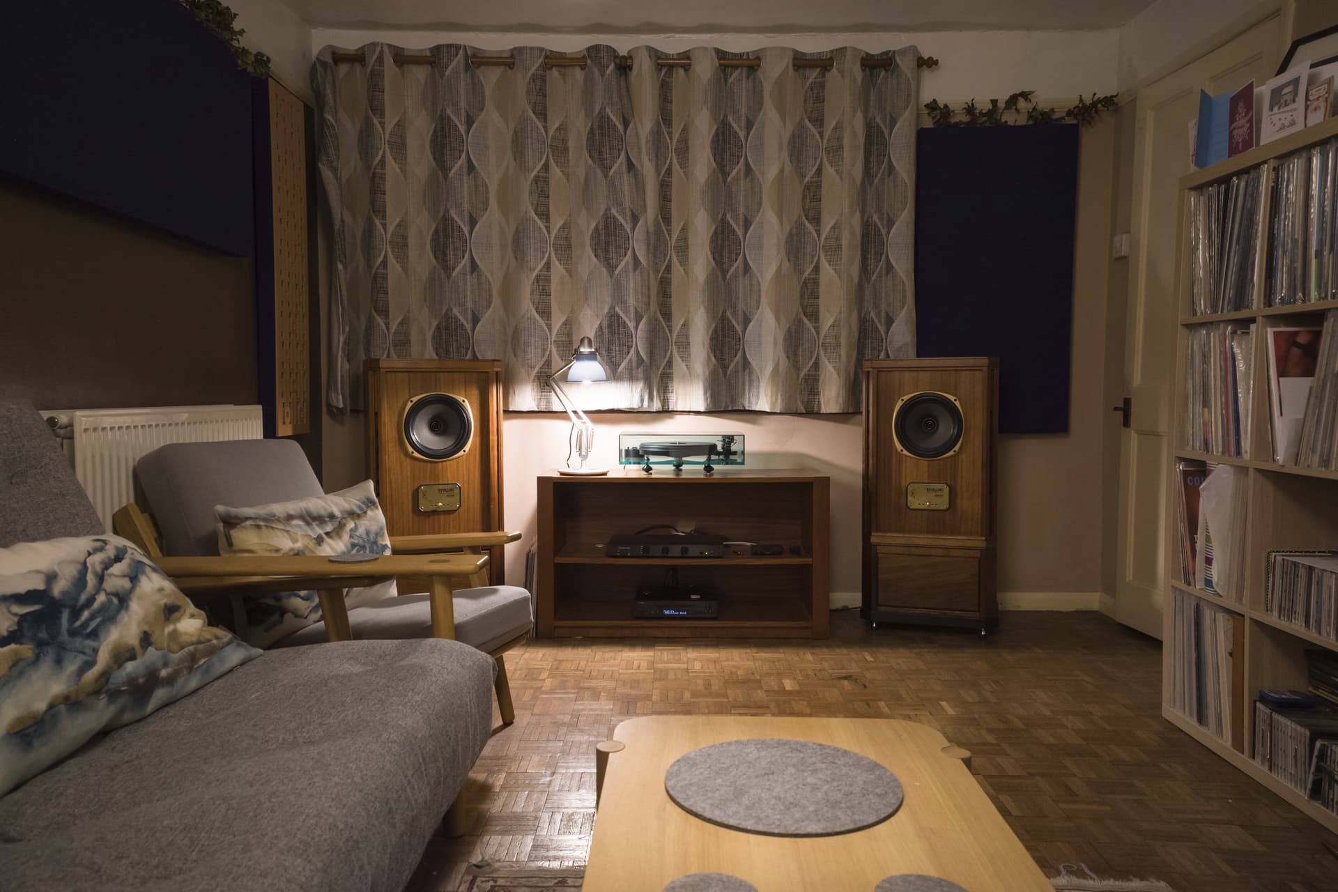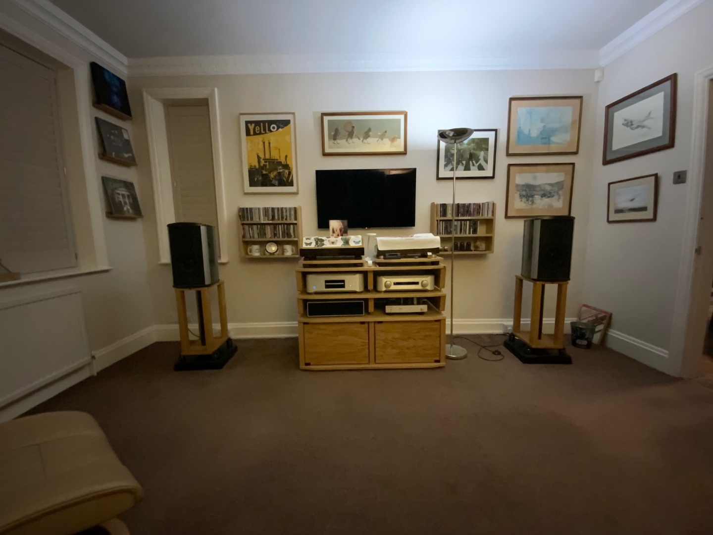 Комната жилая, а не КДП. Уместнее поставить АС где камин, но там телик в углу. Судя по компонентам все простенько, но фотки красивые