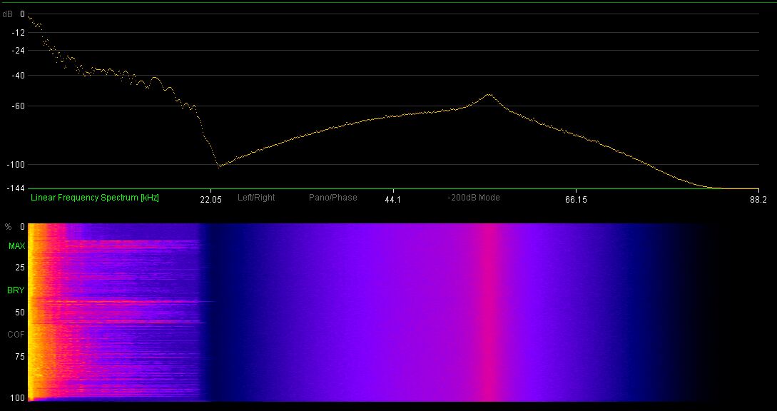 Возможно, я путаю, но мне казалось, что нет способа в принципе обращаться с DSD как с файлом, в котором можно было бы к примеру увидеть спектр. Это можно сделать только прогнав его через конверсию в PCM, а она всегда оставит шумовой холм.