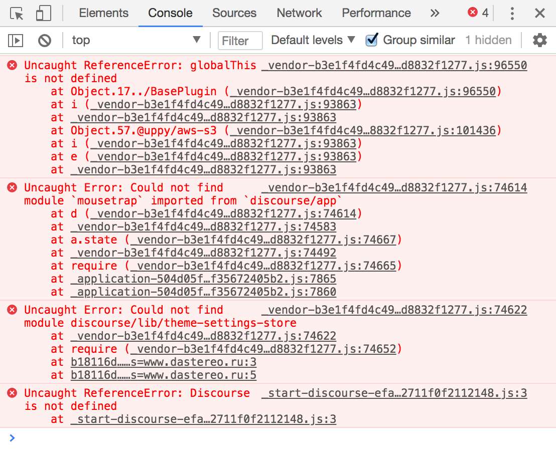 Просто пустой экран. Такое бывало и раньше, но после перезагрузки страницы всё работало. Сейчас вообще ничего не помогает, даже перезагрузка компа.