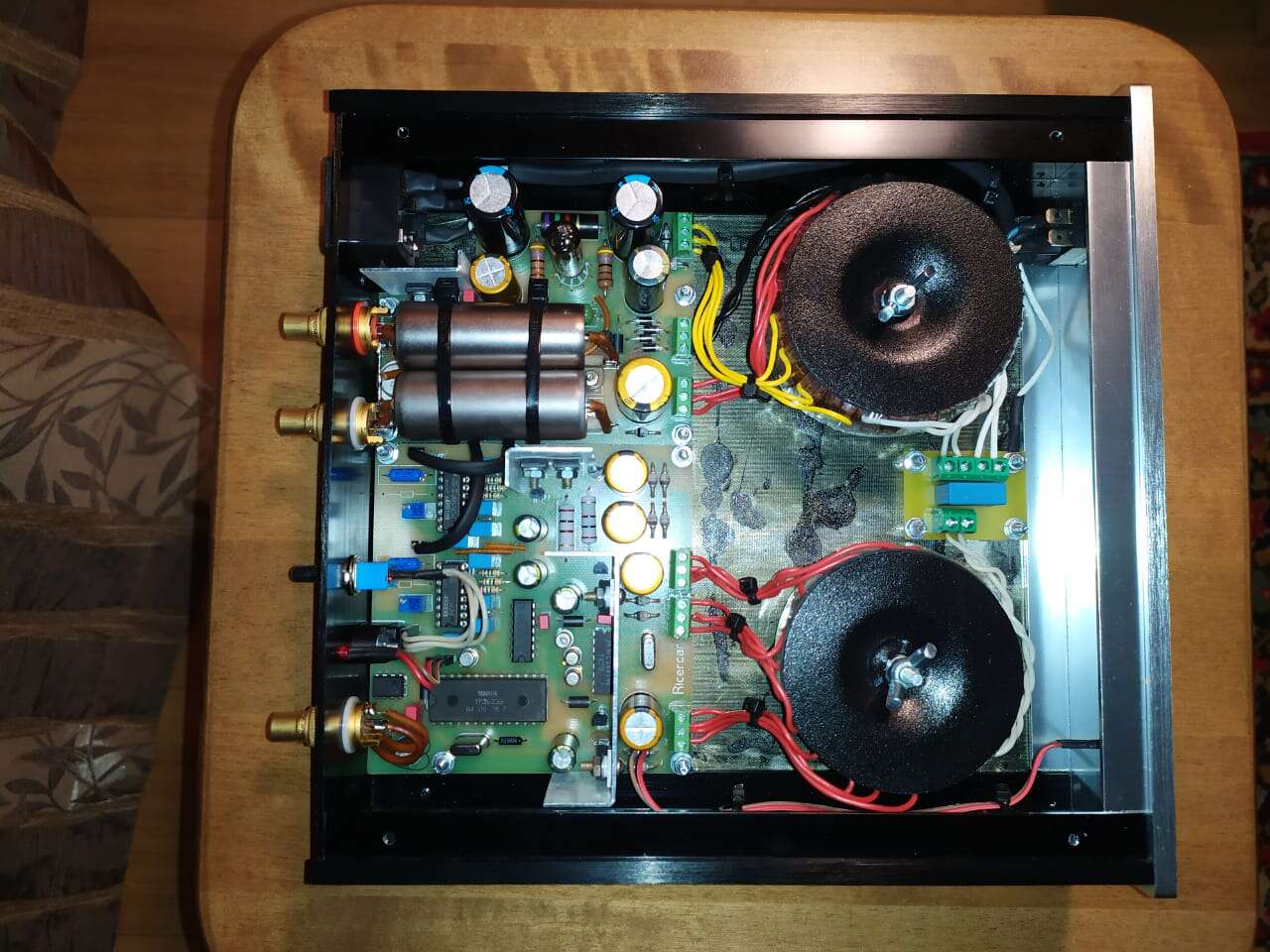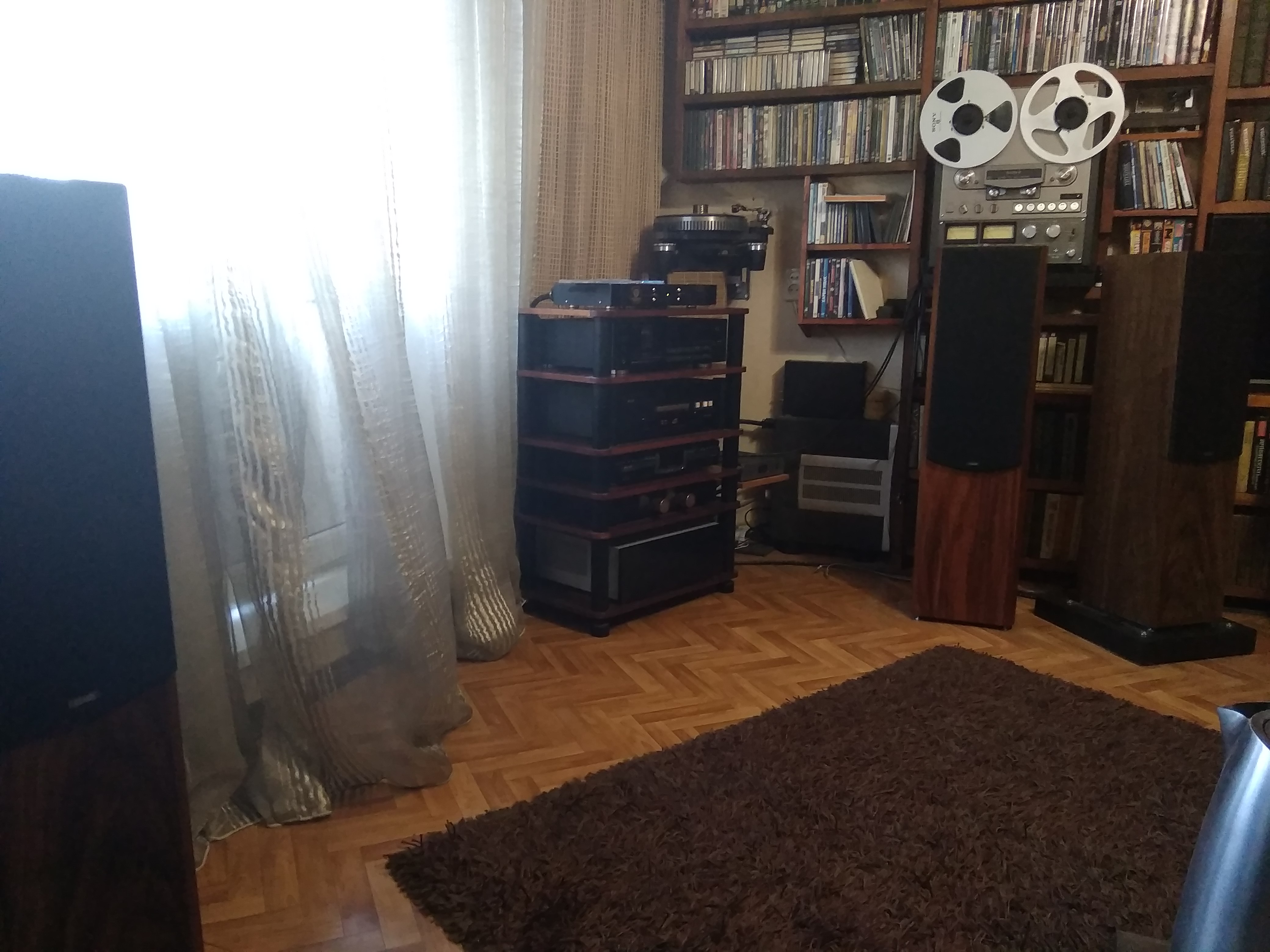 Напомню, что при нулевом прослушивании хорошо прогретый аппарат поразил меня глубиной баса. Первое включение турового экземпляра принесло лёгкое разочарование, колючий, звонкий звук, да ещё и довольно таки слабенький. Слабость, впрочем, ушла примерно после 3 часов прослушивания, реально периодически подходил и убавлял громкость, пока не пришёл к обычному положению рукоятки. В дальнейшем аппарат перепадами громкости не страдал и честно отработал/прогрелся в режиме 24/5 с редкими отключениями для перекомутации.