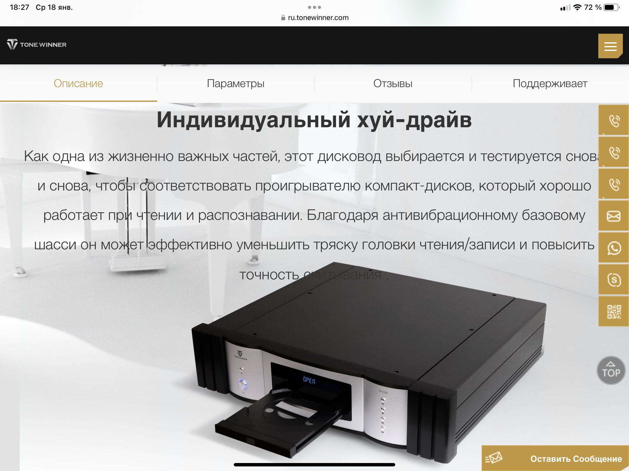 Ритмичный и живой звук, конденсаторы Blackgate, TDA1305, хороший транс, отличная СД механика, что ещё нужно???