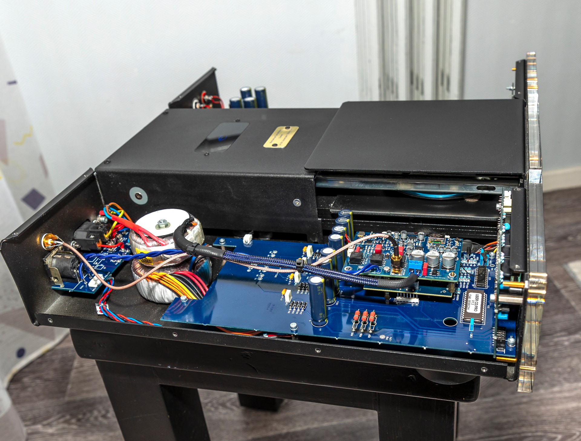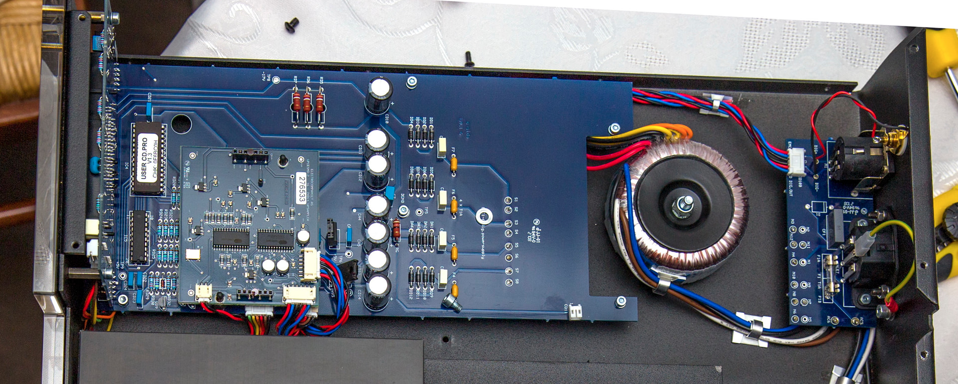 Как правильно заметил Maксим, была добавлена плата-модуль цифровой выход спдиф. Это авторская разработка Руслана. Для её питания, также был добавлен ещё один бублик. Таким образом, БП в аппарате стало три.
