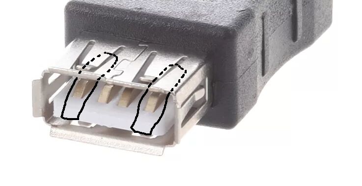 За питание отвечают самый левый и самый правый контакты разъёма. Их и заклеиваем.