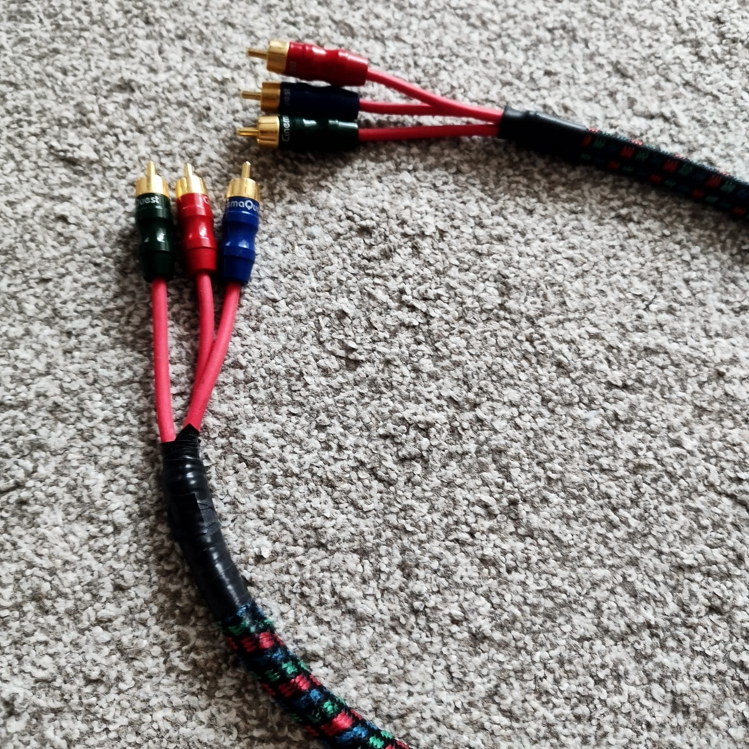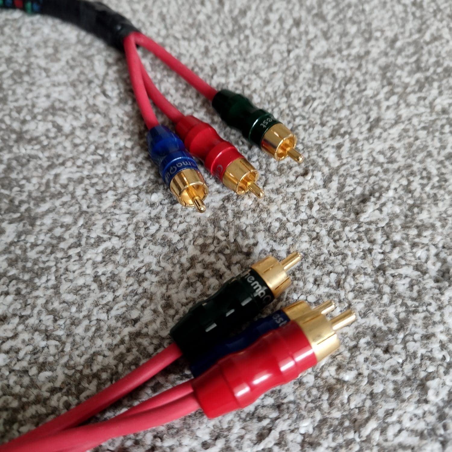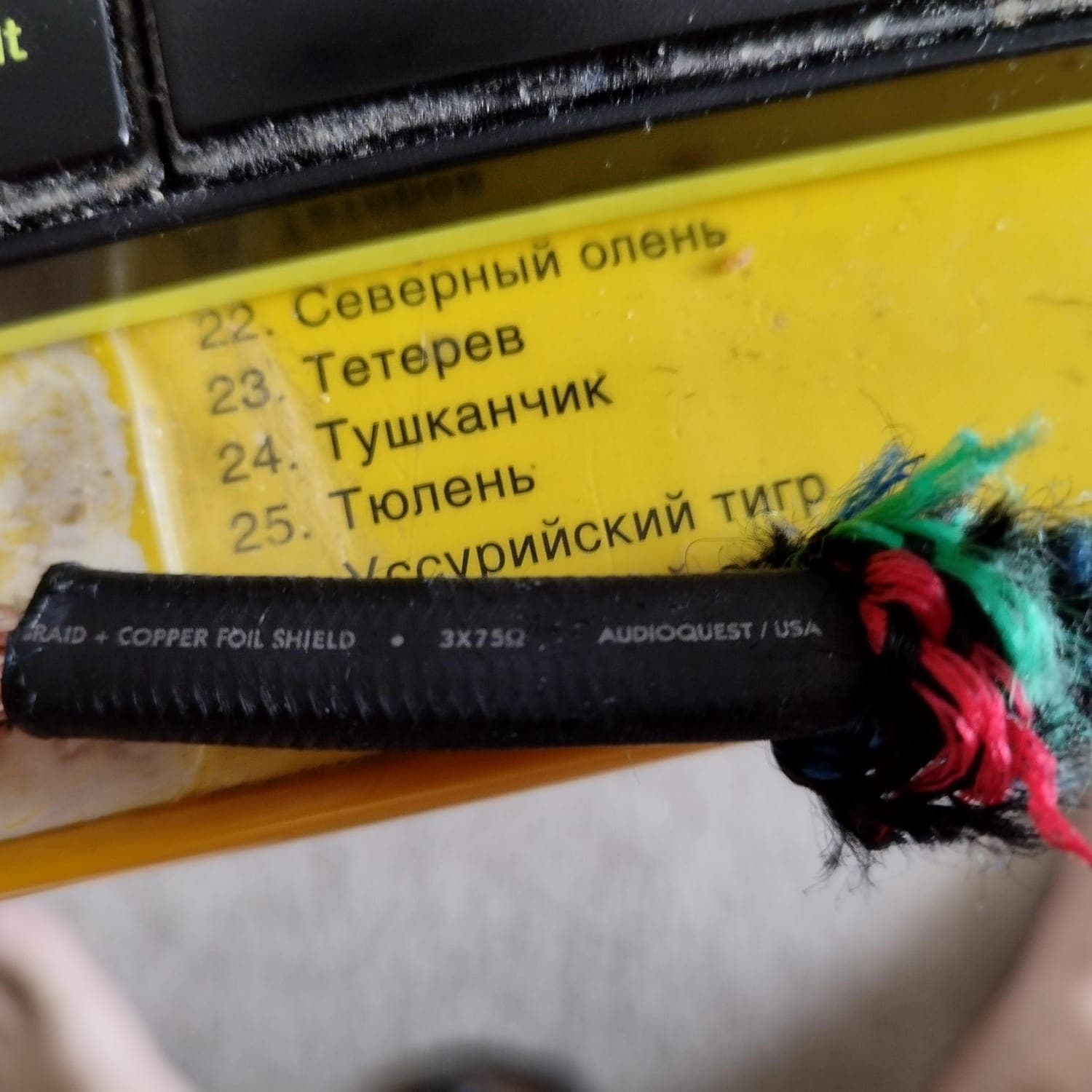 Всем привет! Уважаемые бояре, прошу опознать модель кабеля, покупался 100 лет назад, коробка не сохранилась. на разъемах надпись Cinemaquest и все. Я кабель вскрывал с одной стороны, думал разъединить на стереопару + 1, но внутри изоляции красного цвета, как на концах не было, и я бросил эту идею, замотал изолентой. На авито один детектив написал что например как я считаю, что если это audioquest YIQ-3 - то разъемы должны быть серебро. Фото кабеля я в инете похожего не нашел (((