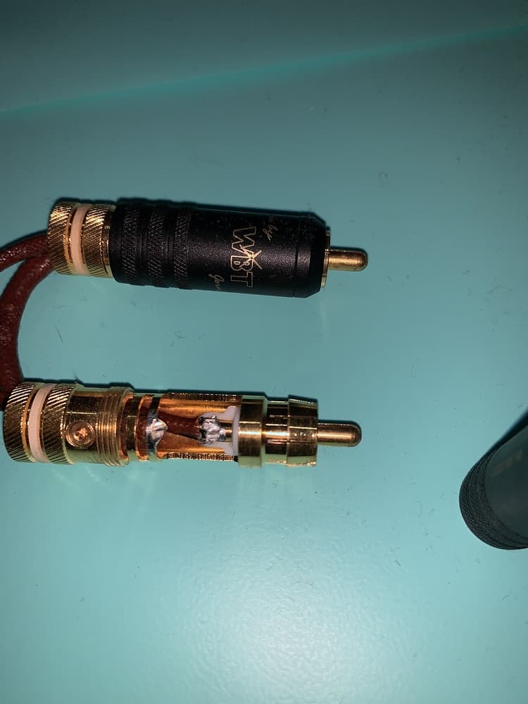 По моим наблюдениям,китайская версия отличается более грубой накаткой сверху,широкими цветными кольцами,во весь промежуток между накатками и винтом под шестигранник,тогда как у оригинала звездочка. Также пластиковый изолятор сигнального пина так не выступает внутри разъема…