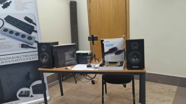 Ребята из NEM искали акустику, чтобы хорошо было слышно смену кабеля, нашли нашу у человека, который года три назад у нас купил! Так мы невольно попали на выставку! ))) Реально хороший сетевой кабель у них, я не ожидал, что такая разница, но для меня такие цены пока дорого, топовый 300К стоит. А системы разыгрались и звук был действительно взрослый по отношению к таким малышам, баса там с запасом. На самом деле реальная, очень интересная бюджетная концепция, но мы как-то на большой звук перекинули свой фокус внимания.