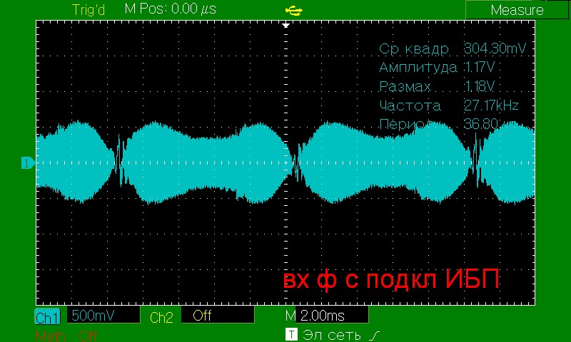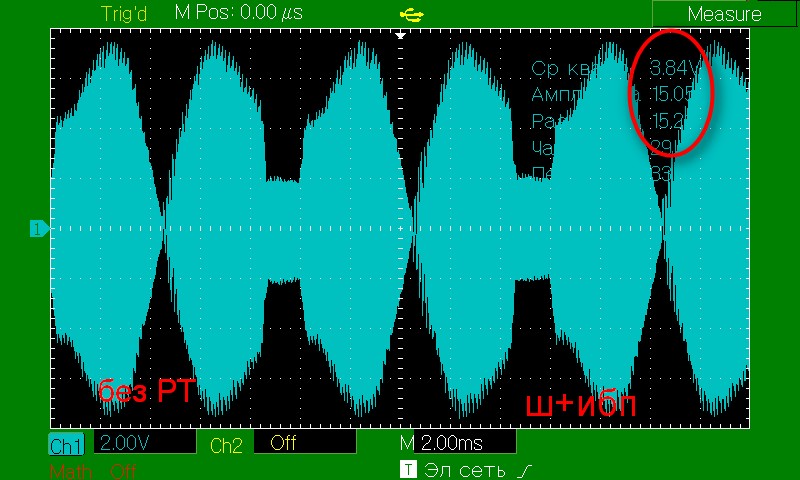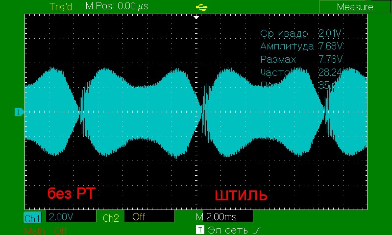 Первая картинка выше, это после РТ. Транс помимо разделения не полностью убирает, но все таки гасит довольно низкочастотную (30 кГц) помеху штиля.