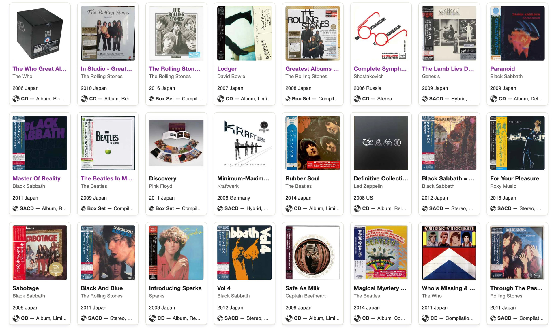 - Black Sabbath – Master Of Reality (SHM-SACD single layer) (Universal Japan) $406